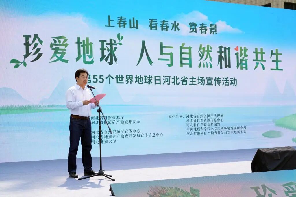 今年4月22日是第55个“世界地球日”,由河北省自然资源厅主办我校承办的“珍爱地球 人与自然和谐共生”主题地球日主场活动于4月22日上午9时30分在我校主楼前举行,活动旨在引导全社会树立“尊重自然、顺应自然、保护自然”的生态文明理念,推动建设美丽中国,共同构建人与自然和谐共生的地球家园。副校长赵永强、河北省自然资源厅总工程师、一级调研员魏风华参加主场活动并致辞。