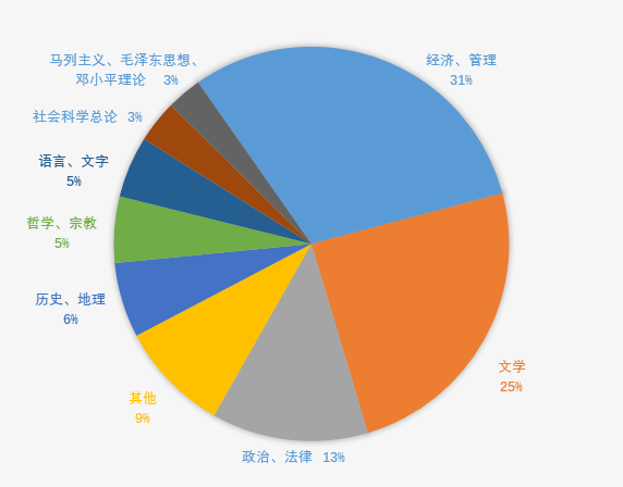 2023年度的中文图书借阅统计中,经管类和文学类图书最受欢迎,同学们在加强专业学习的同时,也不忘提升自己的文学素养。