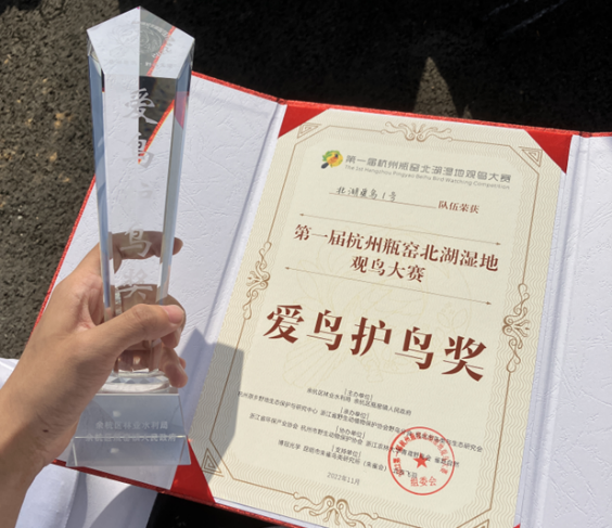 社团荣获2022年秋季全国鸟撞公民科学调查项目优质志愿者。2022年杭州瓶窑北湖湿地观鸟大赛爱鸟护鸟奖。