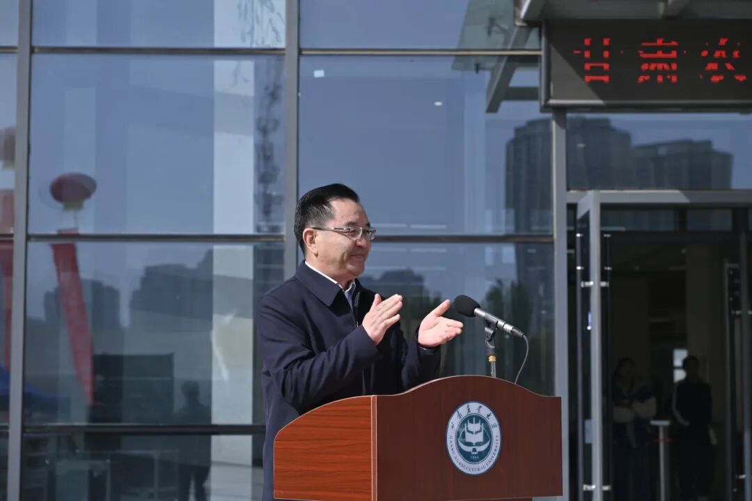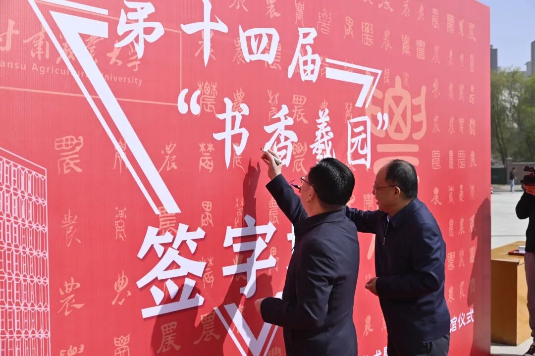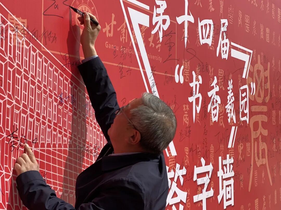 廉志端宣布甘肃农业大学第十四届“书香羲园”读书文化月活动正式启动、甘肃农业大学图书馆正式开馆。随后,在场师生签字留言、进馆参观并参与活动。