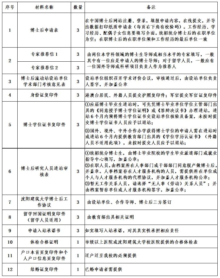 详见《2024年沈阳建筑大学博士后招收信息表》(点击阅读原文,输入sjzu提取码进行下载)。