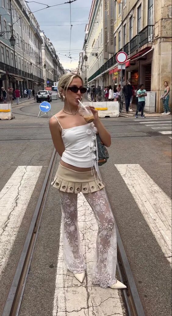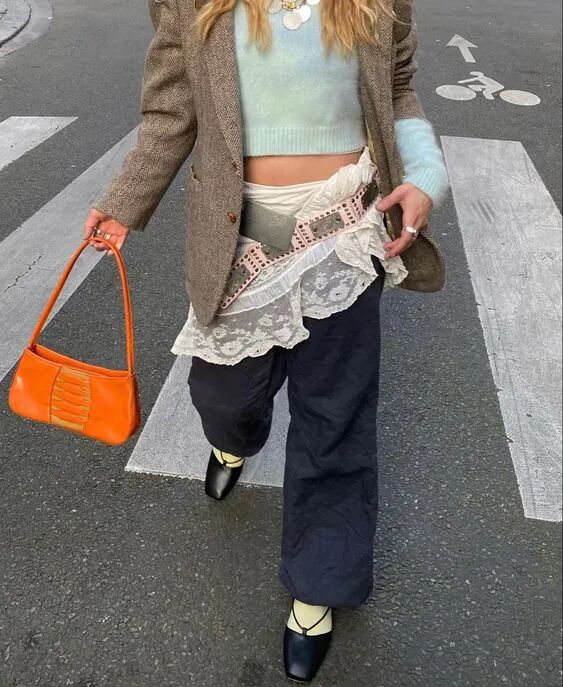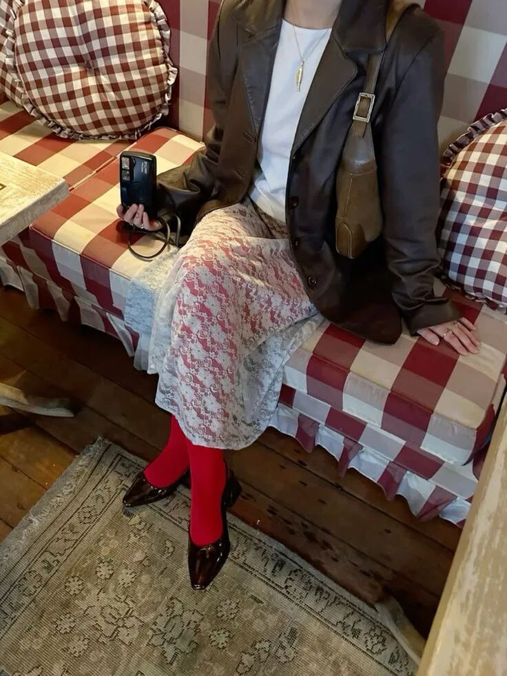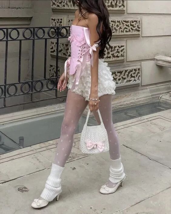 再保留一些重要元素——蕾丝和蝴蝶结🎀,不再必须是舞鞋加舞裙,只要身上有这几个元素,恭喜你就抓住了balletcore的精髓,并且还能穿的有点「花」!尤其是在下装穿搭上。