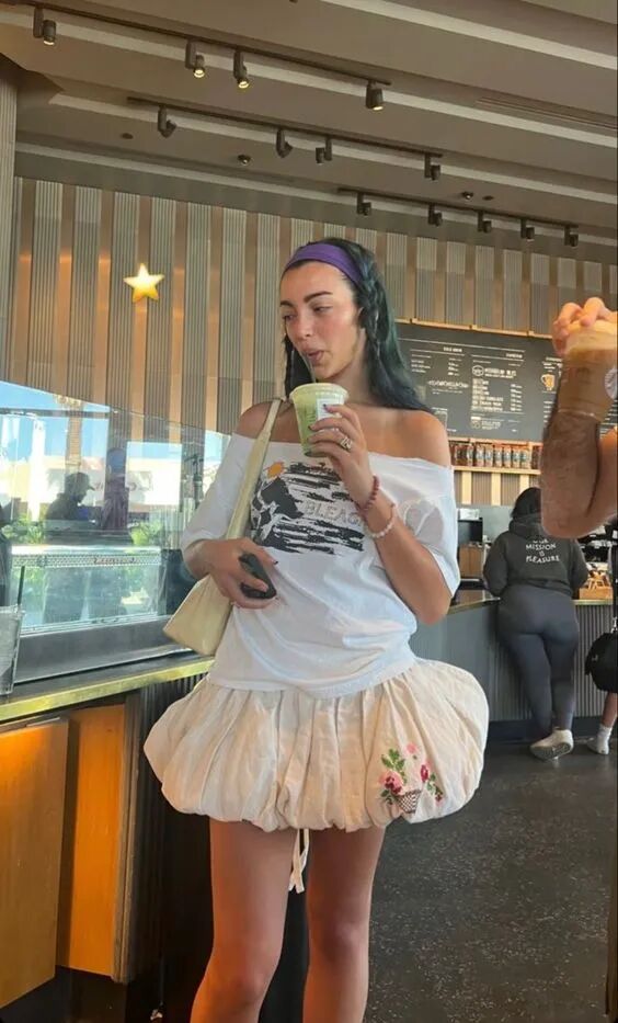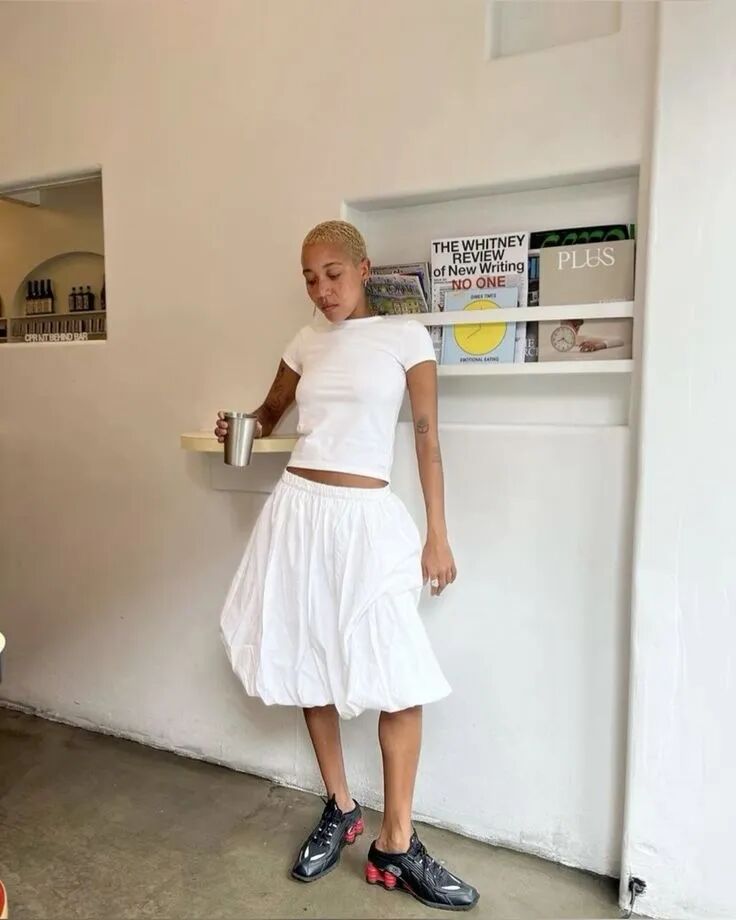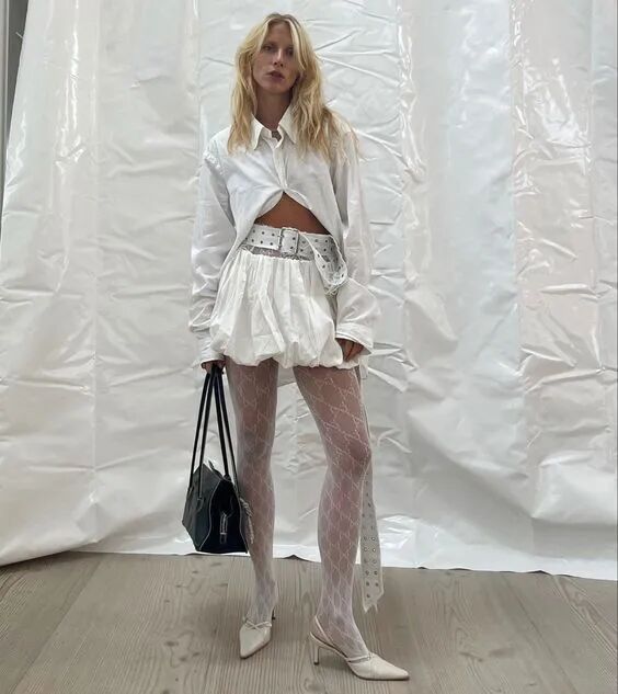 万变不离其宗,从少女心爆棚的balletcore衍生穿法来的「花苞裙」,当把芭蕾舞长度的蓬蓬短裙换成花朵形状的花苞裙时,效果更加轻盈,街头感也更强,当然也会更日常。