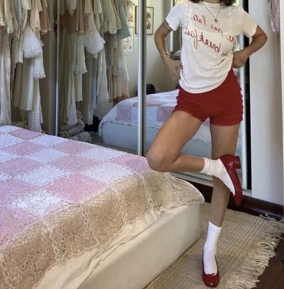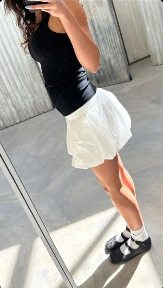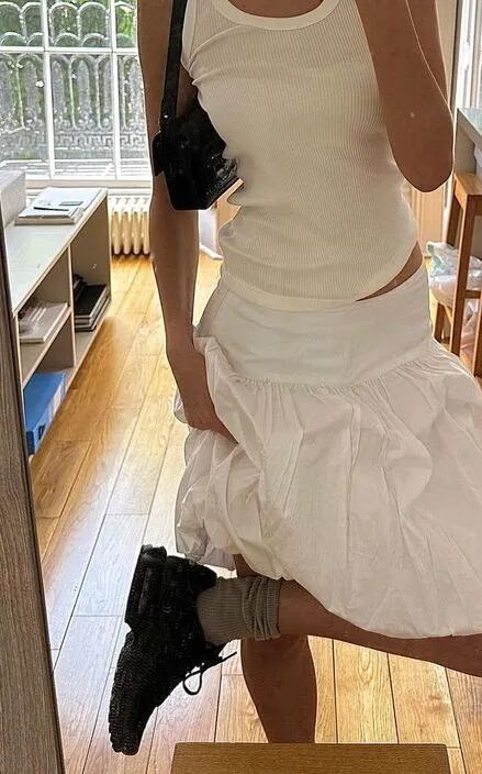 之前不敢尝试balletcore风格的,大可从花苞裙搭配袜套和简单的芭蕾舞鞋组合开始,搭配自己的芭蕾美学风格。