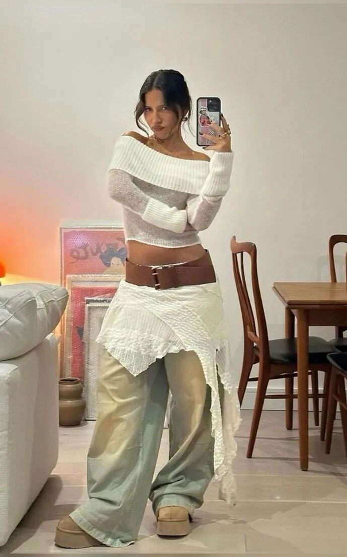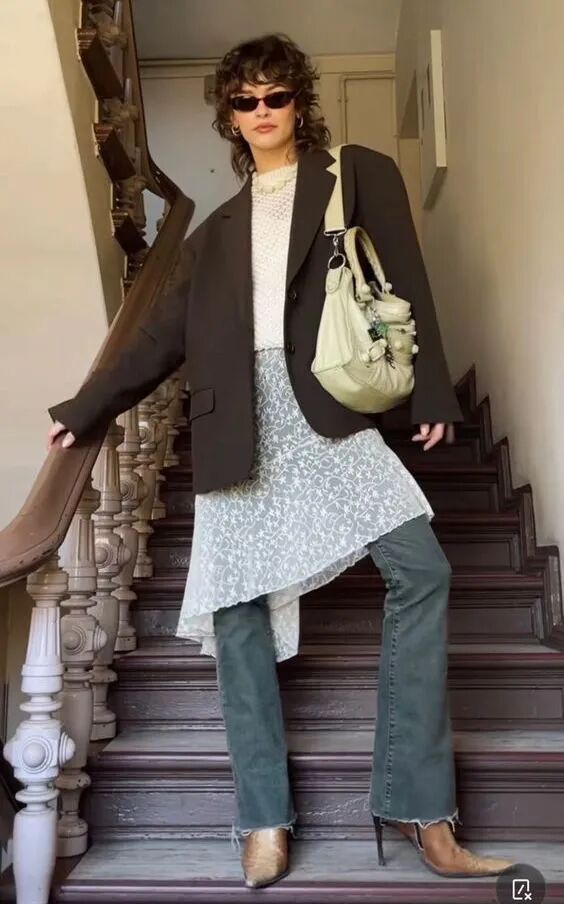 当然也有大大大时髦精们就是瞅准了屁帘的花里胡哨的个性风格,用哪怕很长或不是轻薄材质的屁帘,打造出更有范儿的穿搭风格。