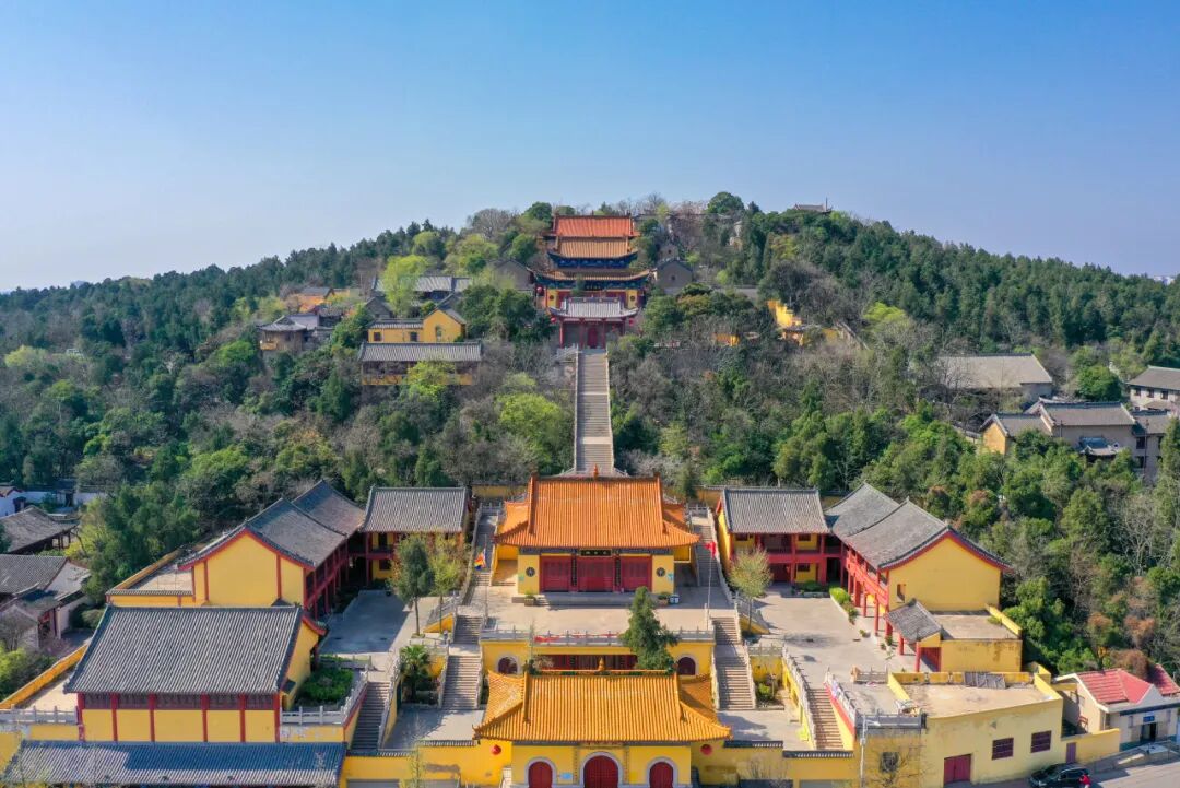从云龙山的北门上来,很快就能看到寺庙大门。接着先后看到观音殿、大佛殿、大雄宝殿、钟鼓楼。若从云龙山南门进来,那就是从高到低来游览,门外则是云龙山的放鹤亭。