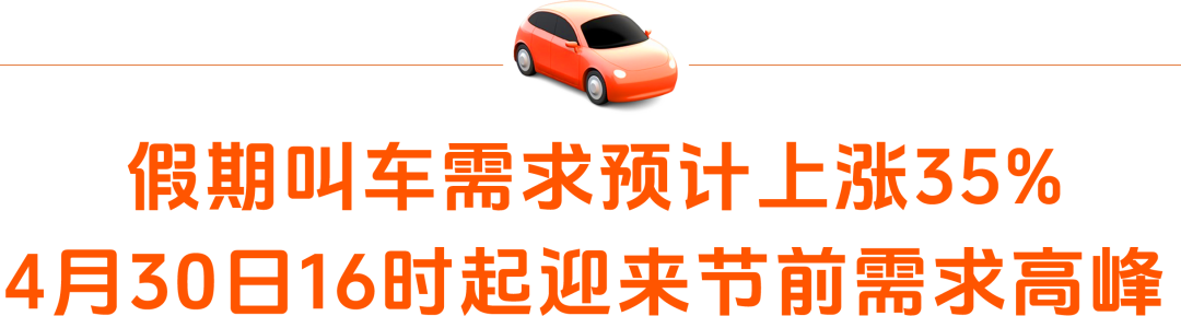 今年五一小长假,滴滴预测打车需求相比节前上涨约35%,三线至五线城市打车需求将上涨50%。很多乘客将陆续踏上返乡、出游、探亲的旅程,司机师傅们还在坚守服务,认真护送每一段旅程的安全到达。为致敬司机师傅们的辛勤付出,滴滴将发放超3亿元司机奖励,同时开展一系列节日司机关怀行动,努力服务好司机师傅们!