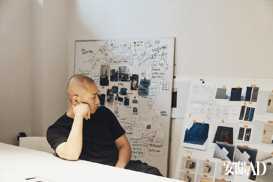文承志在工作室中整理项目灵感板;在三位合伙人默契分工和协调配合下,工作室所负责的业务范围不断扩展,项目涵盖品牌空间、家具设计及制造、品牌以及艺术展厅设计等。相比起植根于首尔城市文化的事务所,如Group of Architecture & Urbanism、Moon Hoon、Z_Lab、ArchiPlan、Space Group,文承志成长于济州岛的背景让teamvirals在项目选址和设计上更强调岛屿的自然风土和人文风情。