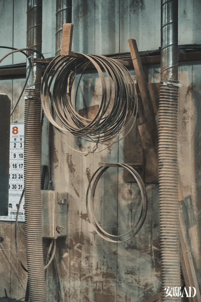 驱车一个多小时,Mun带我们前往位于首尔郊外的工厂,这里可以处理大规模的家具样品及产品制作,Mun向我们展示了尚在不同制作工序的木制及胶合板家具作品。