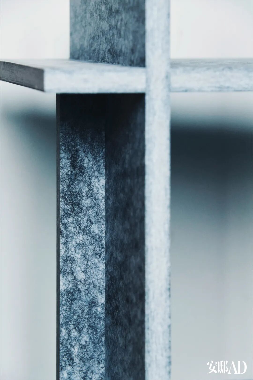 Mun为搭配空间项目所设计的模块家具系列,其家具作品大多取材于回收材料,有时为打造空间项目后用剩的建筑材料,又或是废弃衣物、乃至城市里难以被处理的“废料”,却赋予了家具质朴迷人的纹理。Mun的设计理念旨在减少原始材料的开采,在设计与制作过程中尽量减少资源浪费,并坚持可持续理念和对环境的保护,这离不开他成长于济州岛的情感羁绊,休眠火山、瀑布、大片的荞麦田造就了丰富多变的地质特征,自然风光虽美,却意味着生态的脆弱,遵循自然规律和尊重、顺应保护自然顺理成章地成为他设计时考虑的前提。