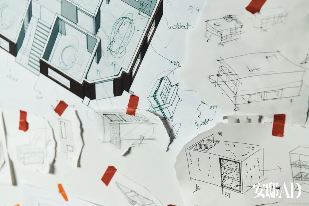 文承志(Mun Seungji)在为工作室的新项目——于2024年1月落成的Blue Bottle延南洞门店空间完善草图,除了涉及时尚、餐饮、艺术展览空间等项目,teamvirals的合作项目囊括卡地亚、彪马、三星等品牌零售展示空间。
