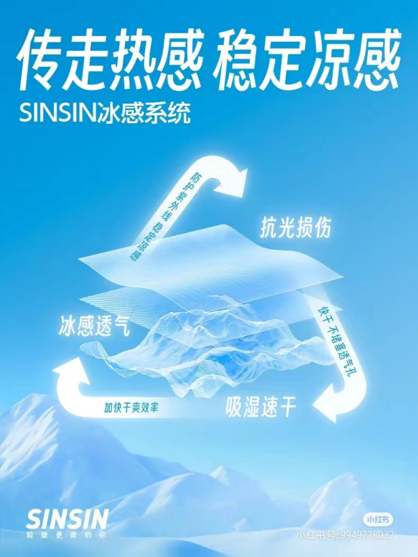 SINSIN创新使用自带温控功能的凉感面料,遇热更冰,遇冷不凉!