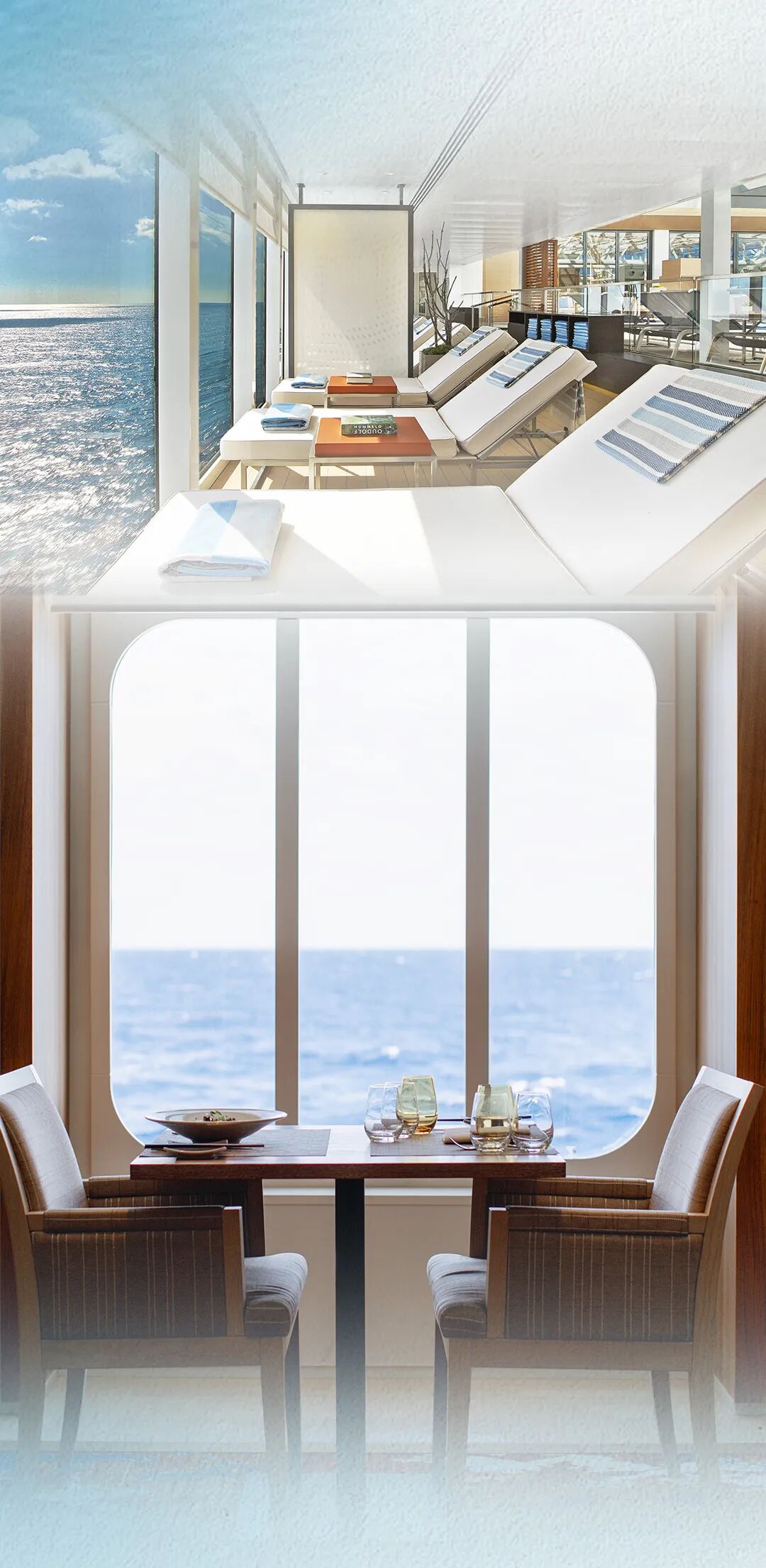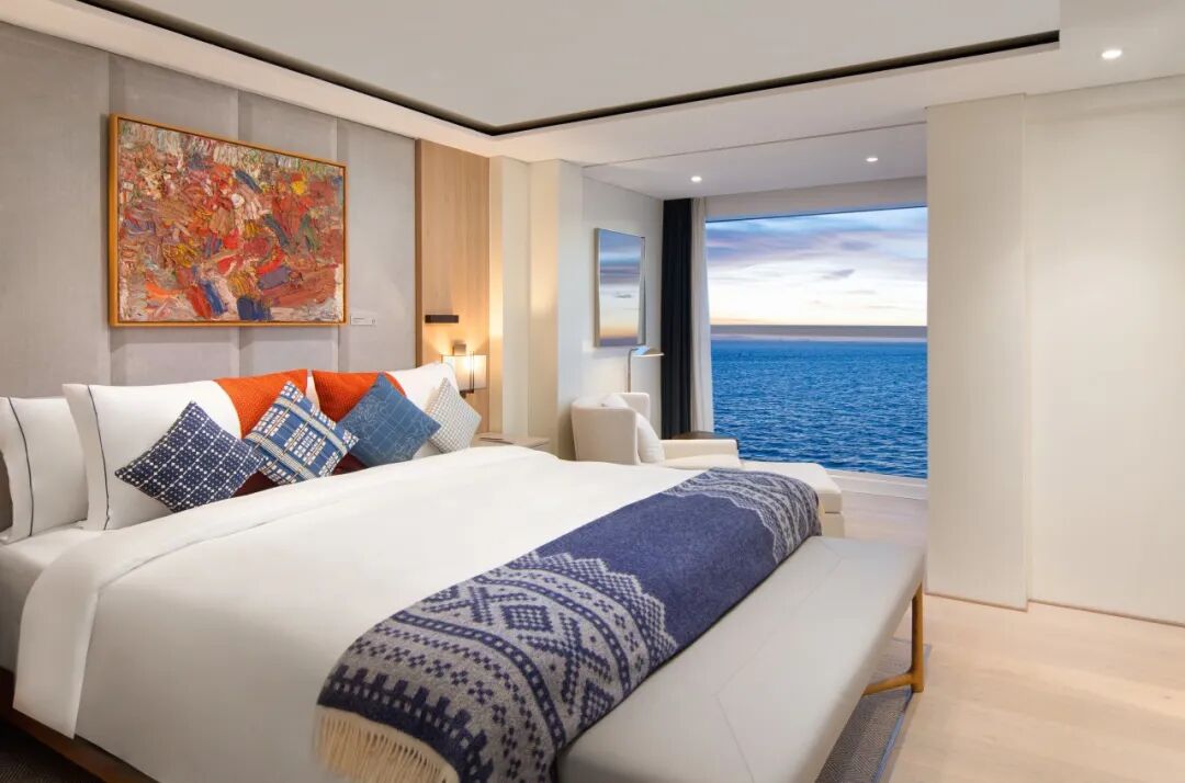 船上栏杆和把手都由皮革包裹,温暖营造每一处细节,为慢旅行添光润色。客房配备的双筒望远镜,带你一览星辰大海,灵感妙思跃然于心。