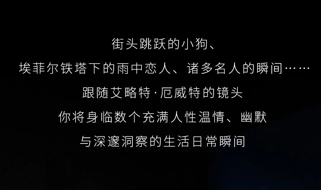 艾略特·厄威特生于1928年的法国巴黎,他的家族后来移居到美国,厄威特在纽约长大。厄威特的作品风格多样,横跨黑白和彩色、纪实和艺术摄影领域。他以幽默、温暖和人性化的方式捕捉了人类和动物的瞬间,从而赢得了广泛的赞誉和认可。在他的镜头下,即使是最平凡的场景,也能变得生动有趣。走进艾略特·厄威特的个人回顾展《镜头下的奇遇》,仿佛踏上了一场穿越时光的旅程。展览为我们呈现了这位传奇摄影大师七十年来的杰作,其中包括一些从未曝光过的珍贵作品。从1946年的早期作品到他职业生涯后期的彩色照片,每一张照片都承载着厄威特的独特视角和无尽的创意。展览的编排十分巧妙,将作品按照不同的系列呈现,透过他的镜头,城市的喧嚣和孤寂、男女之间微妙的情感交流、女性的力量和柔美、孩子们天真无邪的笑容、海滩上那片宁静的蓝色、名人们不同寻常的一面、以及人们在博物馆里专注聆听、艺术作品中的抽象美,都触动着观看者内心对世界的感知。![]()