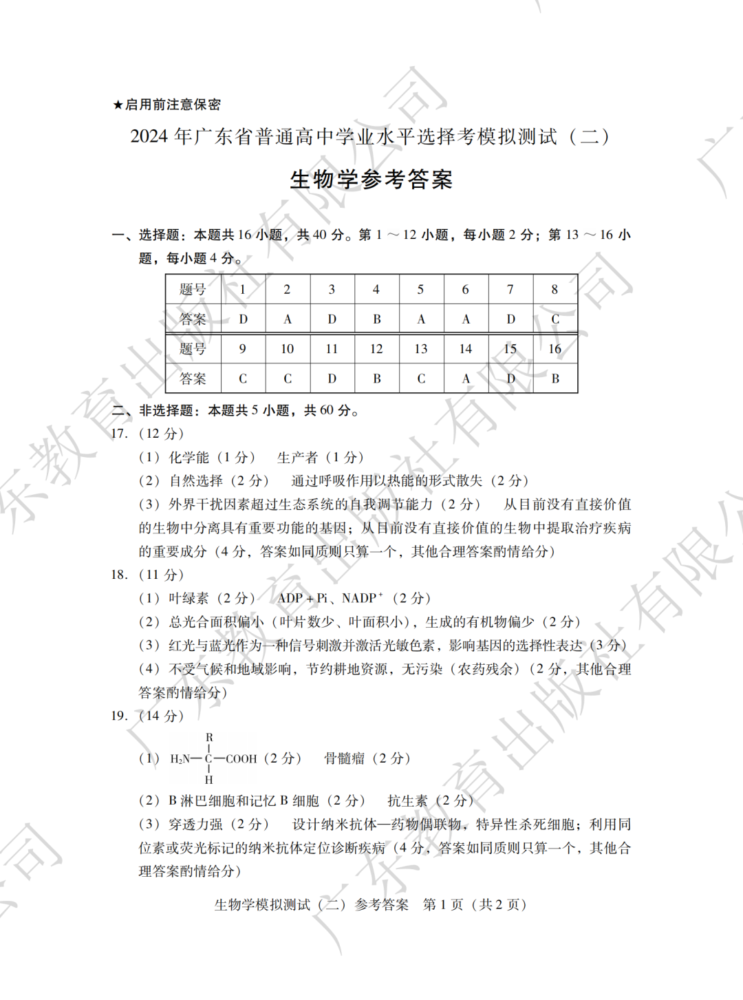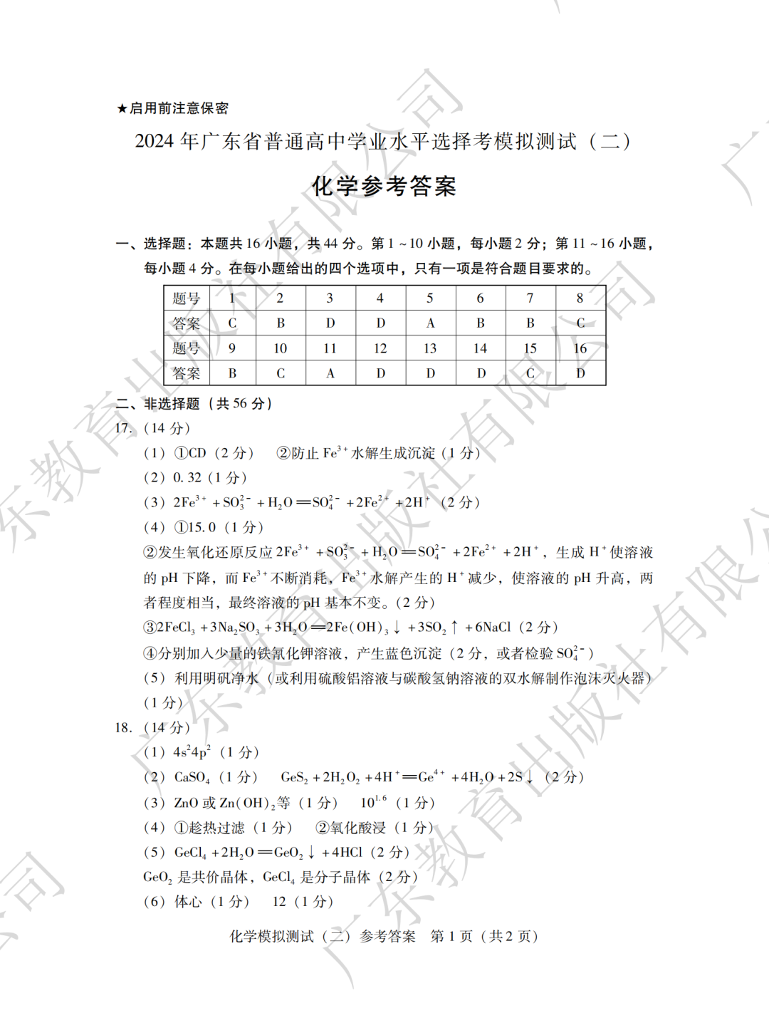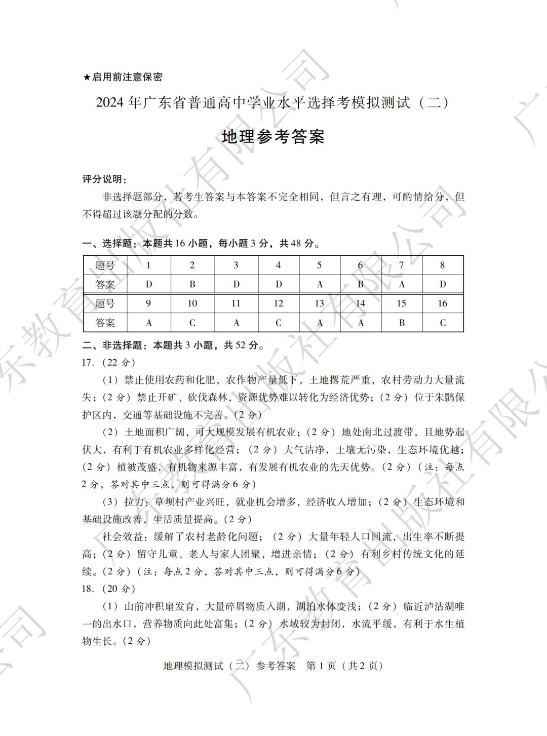 摘要:2024年广东二模化学、地理、思想政治、生物学答案汇总