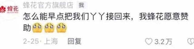 国货蜂花在有关丫丫的新闻下留言,表示愿意赞助丫丫回家。