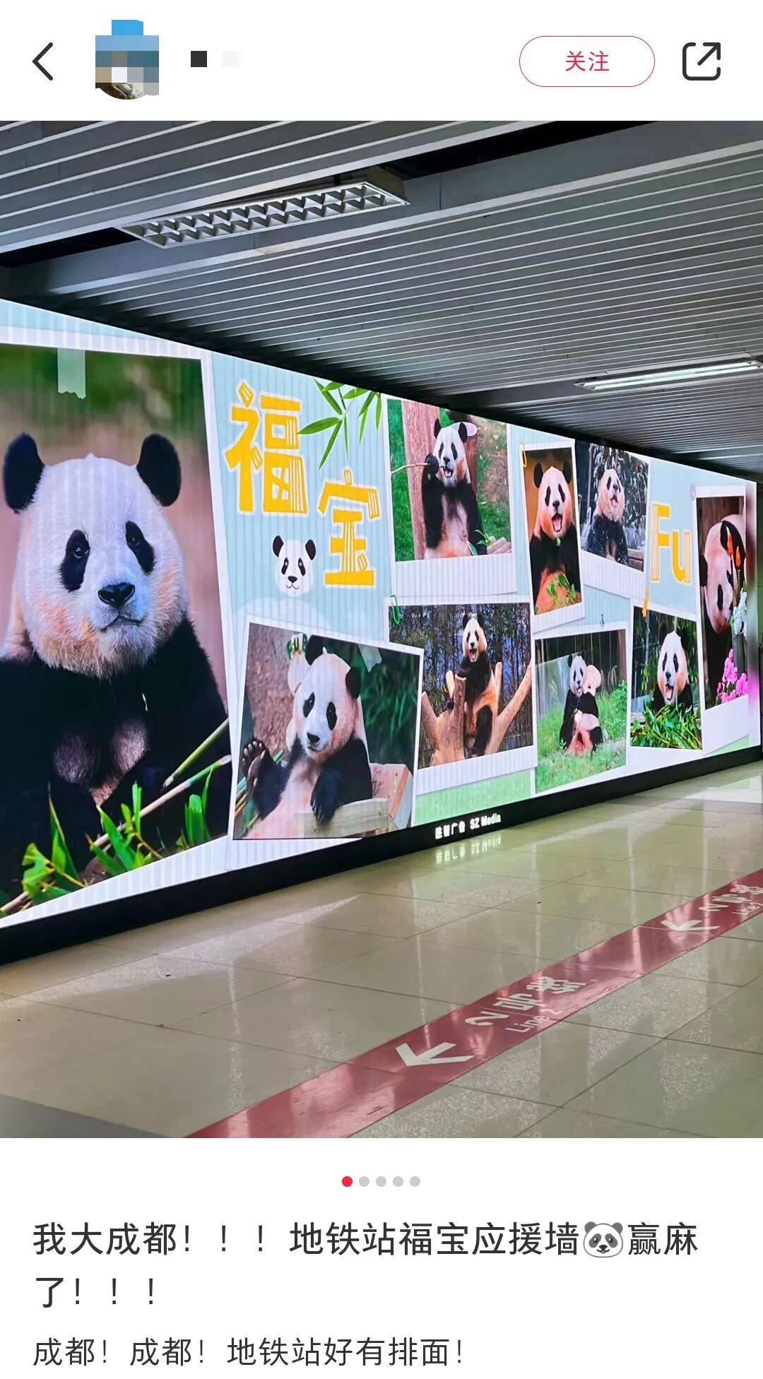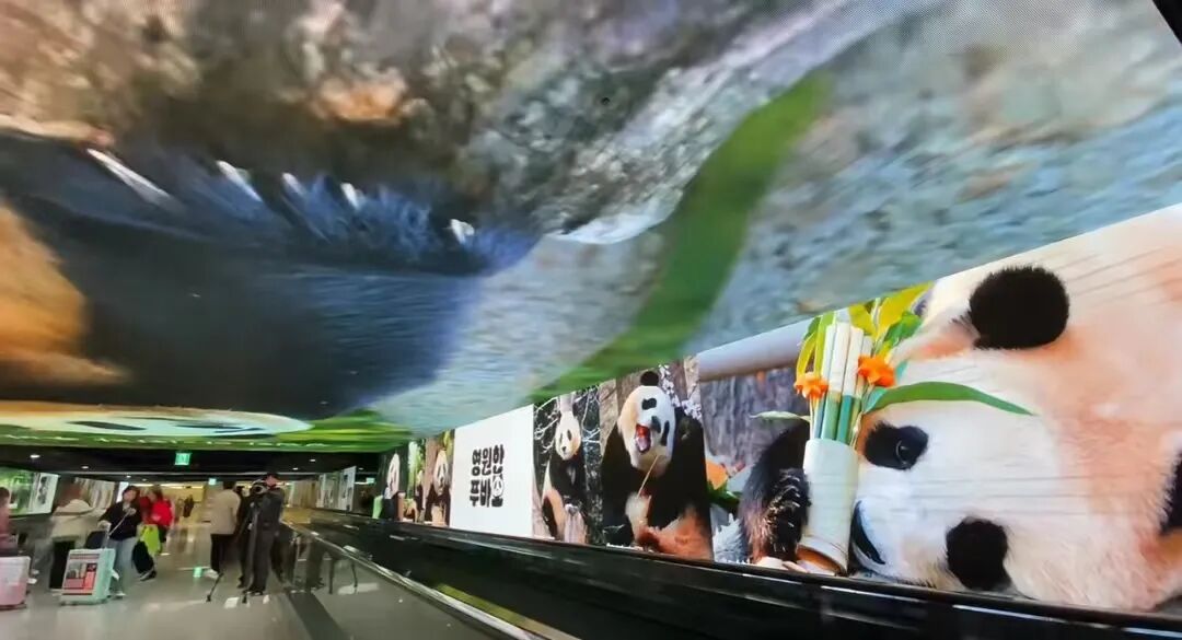韩国那边,粉丝集资在仁川机场隧道投放了超大的福宝应援广告,据说地铁站也有。
