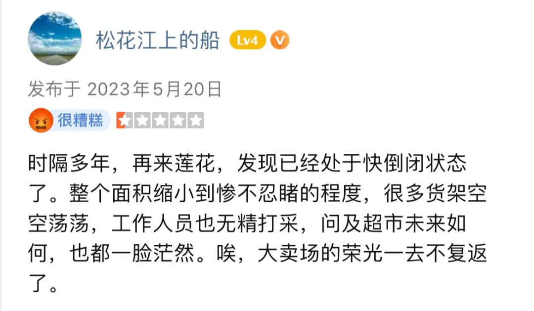 当然,即便租约到期,也可以续租,最终还是反映出在大卖场这一业态模式积重难返,在相对低迷的消费大势和更激烈的低价竞争之下,门店盈利状况难有改善,业态缺乏未来,因此大多会选择止损关店。