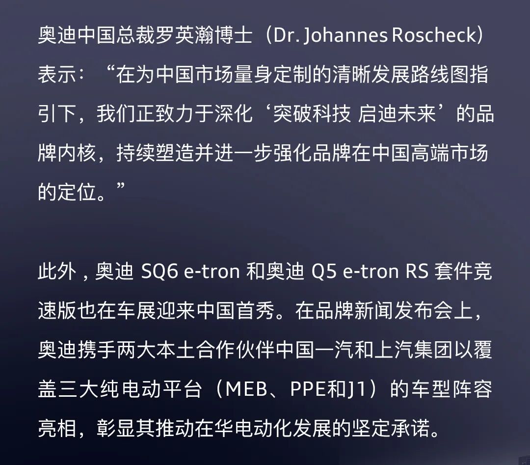 文章内容来源于公众号:奥迪中国,点此可查看原文,内容版权归相关企业所有,本网站仅供交流学习。若涉及版权问题或存在侵权情况,请及时与我们联系,我们将第一时间进行删除处理。