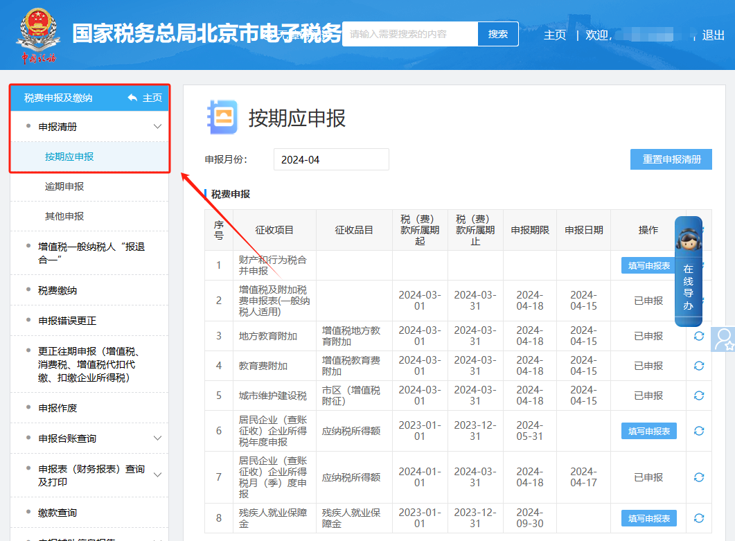 二、税费申报及缴纳—申报清册—按期应申报,进入后在“企业所得税(年报)”后方点击【填写申报表】,系统提示小型微利企业优惠内容,点击【确定】。