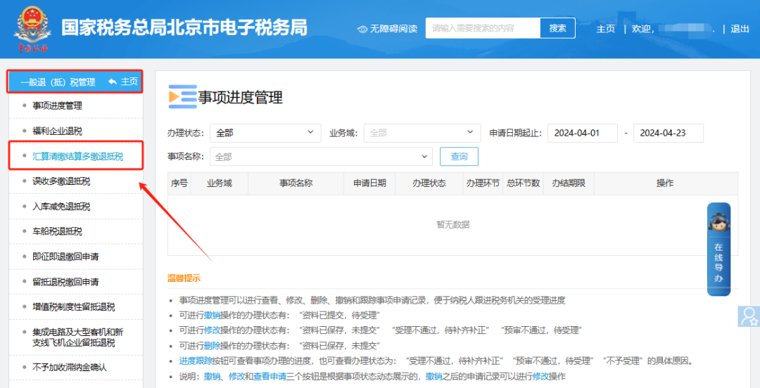 一、我要办税—一般退(抵)税管理。