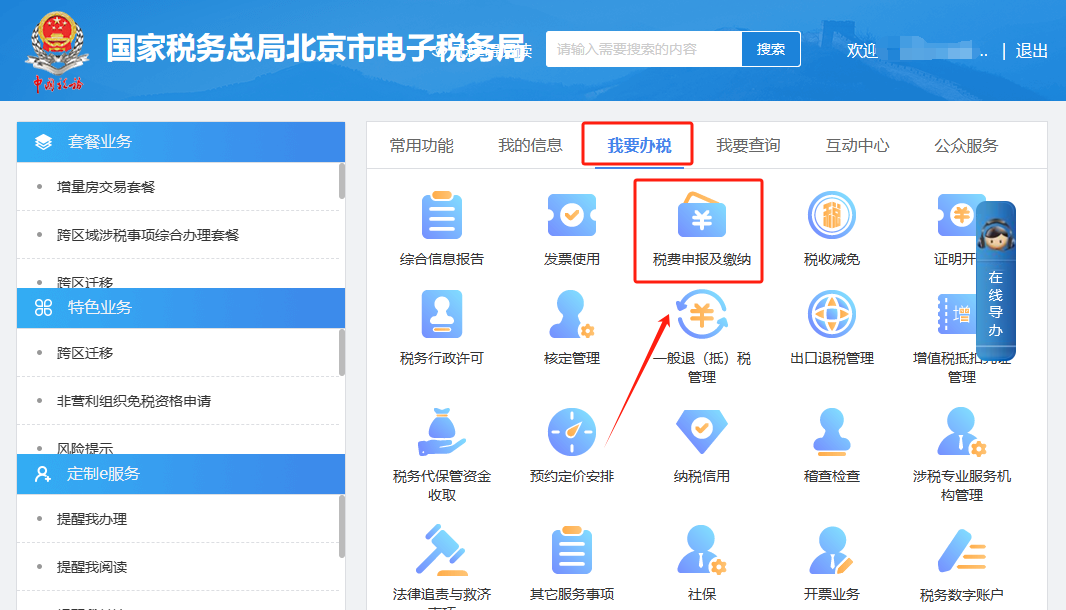 一、我要办税—税费申报及缴纳。