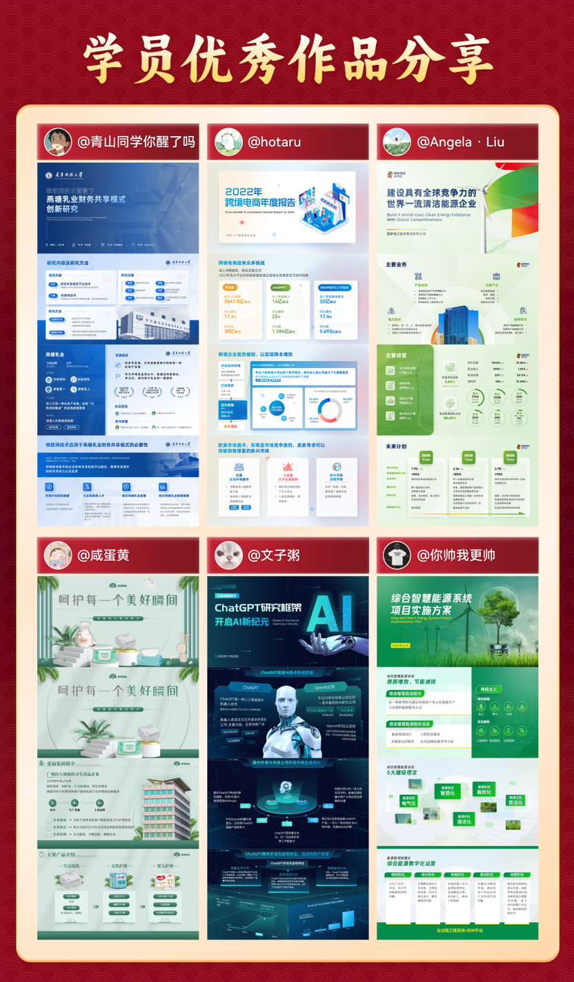 当然,在社群你也可以看到其他学员的优秀作业,以此对比自己的不足,还对版式积累很有帮助。通过每周作业的练习,社群里已经有很多学员可以独立做出高大上的PPT了!![]()