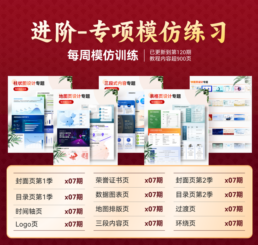 另外,要想真正掌握PPT这项技能,光学不练,这可不行!针对这种问题,从2021年开始,我们就为社群学员开发了一套保姆级进阶练习:每周模仿练习。![]()
