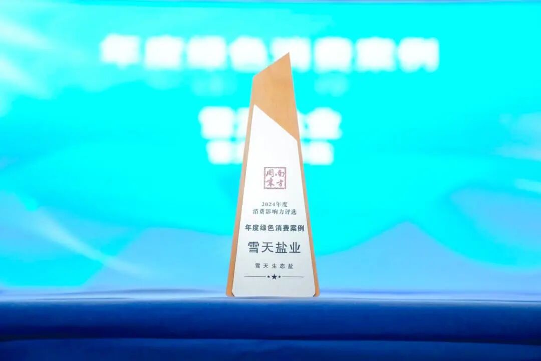 2024年4月13日-18日,第四届中国国际消费品博览会在海南海口举办。期间,由南方报业传媒集团和中国(海南)改革发展研究院联合主办、南方周末报社承办的2024中国消费发展论坛配套召开。凭借着数年来在高质量绿色发展方面的努力,雪天盐业“雪天生态盐”荣获2024中国消费发展论坛“年度绿色消费案例”。