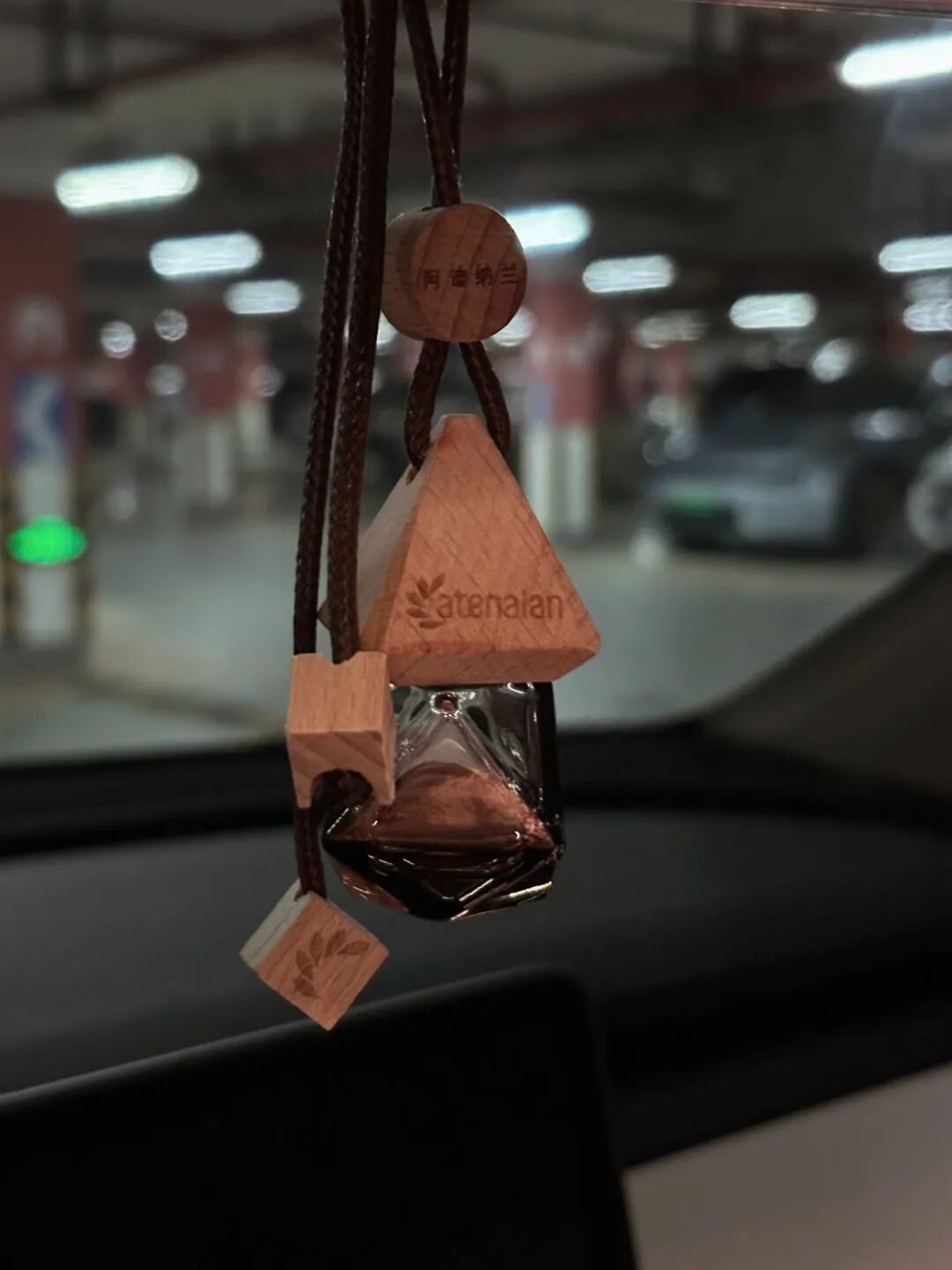 提车之前我就一直在想我的车上应该要有个香薰,我觉得香味可以让我的开车的时候情绪更稳定,这款香薰最好是从存在方式到香味都低调一些。经过再三挑选,最终我购入了阿迪纳兰的车载香薰挂件,这款香薰整体比较小巧,玻璃瓶身用于装香薰精油,木质瓶盖用于扩香,瓶盖上搭配了一根同色系的挂绳,可以挂在后视镜上。