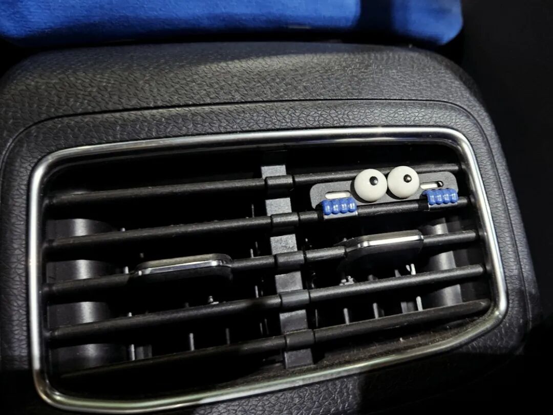 我目前在使用的这款产品,它只是个香薰容器,我可以自己买空白的扩香棒、滴入喜欢的香薰液后替换进去。我购买它的原因单纯是因为它可爱的样子——一双趴在空调出风口向外望去的大眼睛。唯一的缺点是由于它需要整体塞入空调出风口,会导致我不能上下调整风向。