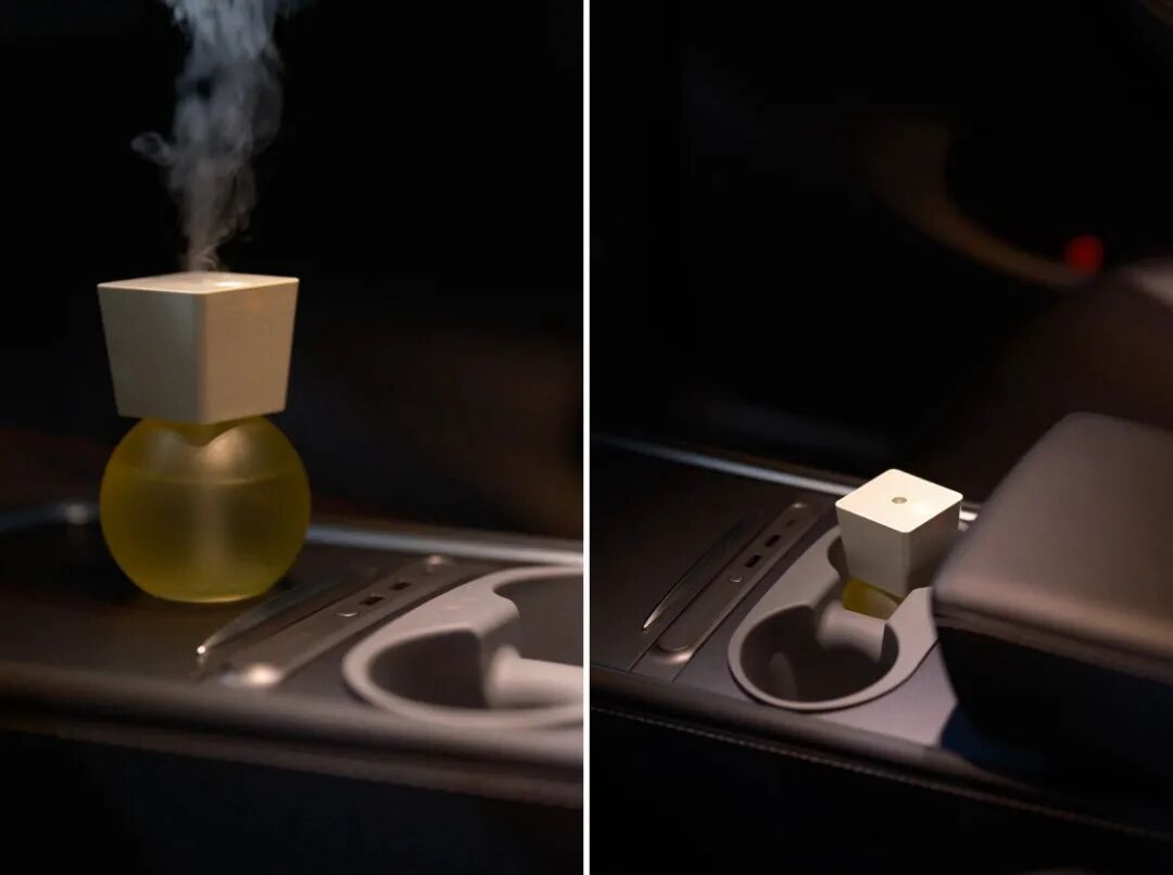 另一个我很喜欢的配件是空调出风口香薰。我是一个对气味非常敏感的人,所以无论是家里、办公室还是车里,我都一定要在可见之处摆上香薰。我购买过很多种车载香薰,它们要不然是太大、太丑,要不然就是扩香不好,试来试去还是用回了出风口的形式。