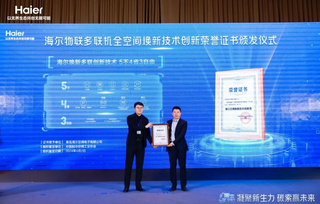 为满足市场更新需求,为用户提供更节能高效的产品方案,海尔智慧楼宇提出的“五不四省三自由”焕新方案,实现不停工焕新、支持全品牌焕新,覆盖未来几年的商用楼宇和公共事业焕新市场,获得中国家用电器行业协会颁发的制冷空调换新技术创新奖殊荣。
