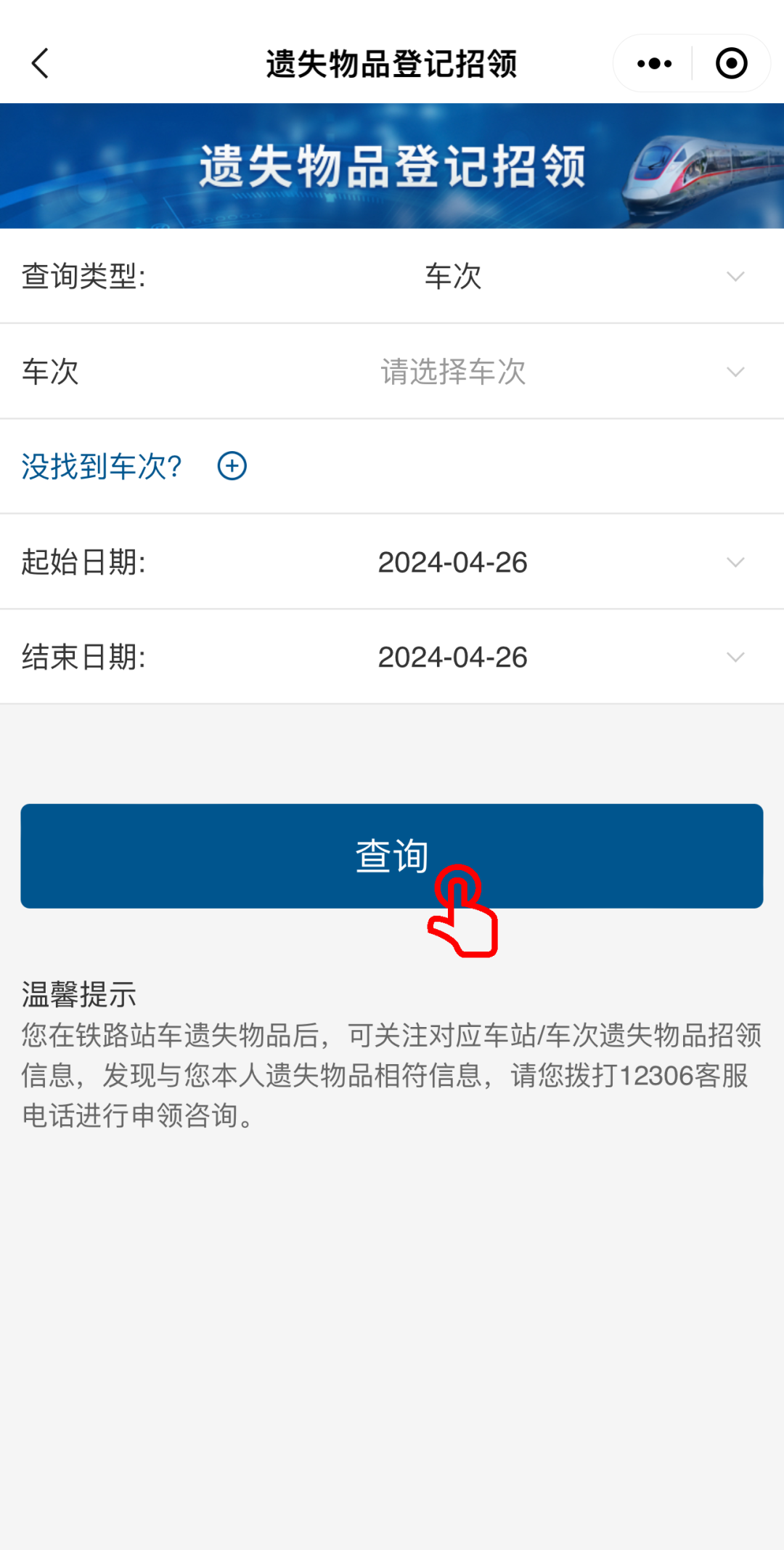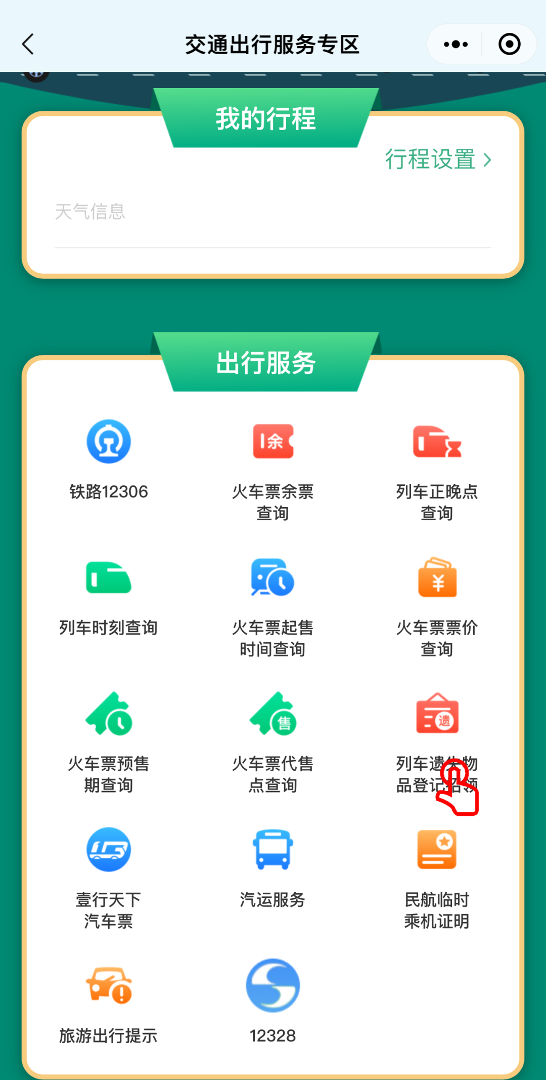 出行时,时常担心在列车上遗失物品?没关系,进入交通出行服务专区-列车遗失物品登记招领,只需提供车次或车站,即可查找遗失物品信息,凭身份证就能领取。