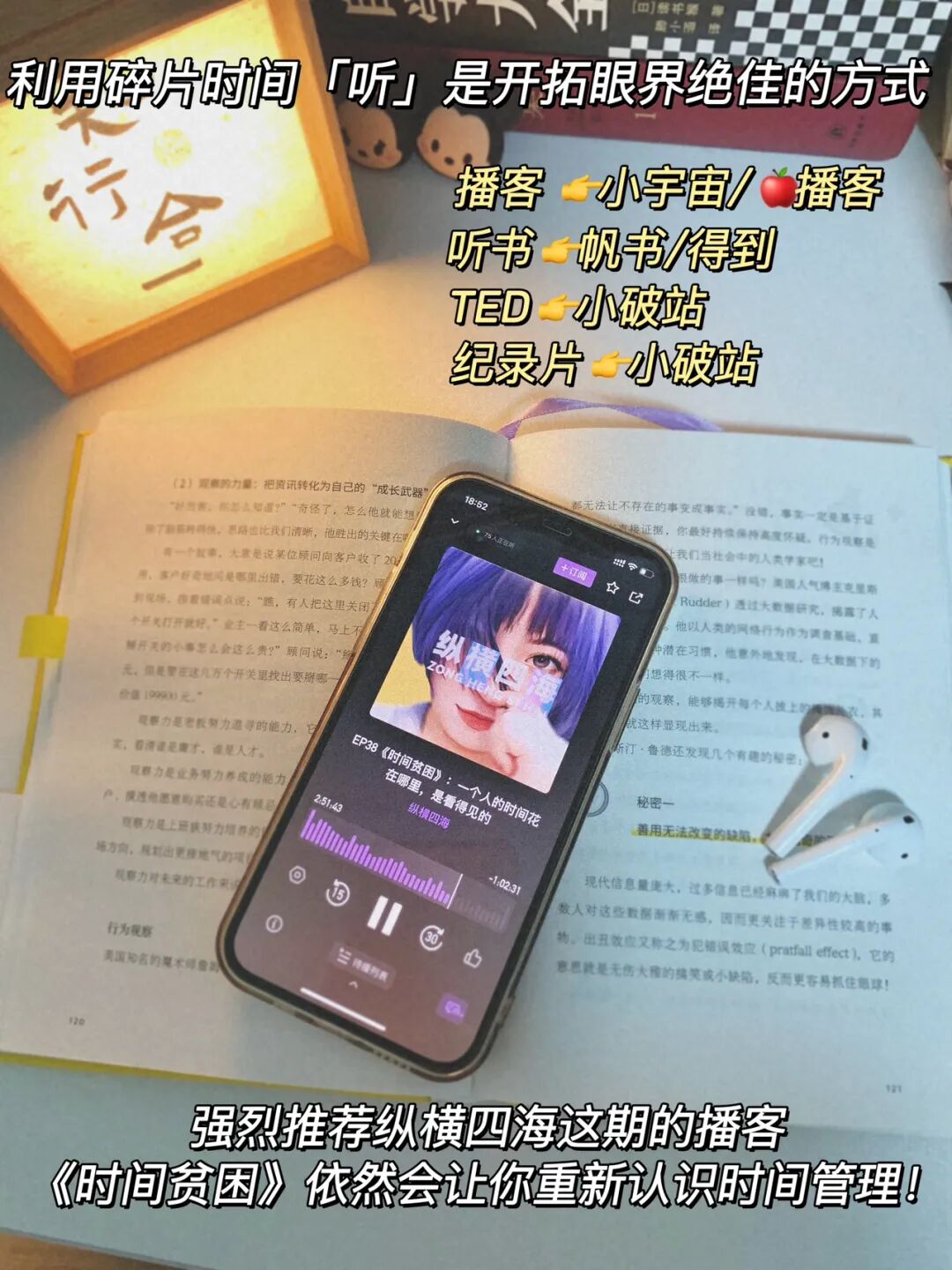 利用碎片时间「听」,听播客、听书、听TED,都是开拓眼界很棒的方式。