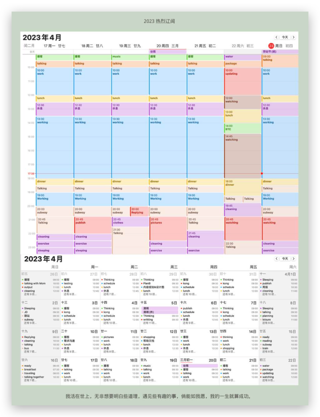 🌰我通过日历和每日视图将每项任务的时间限制可视化,从而可以更好地复盘自己在哪个时间段效率更好、专注度更强。