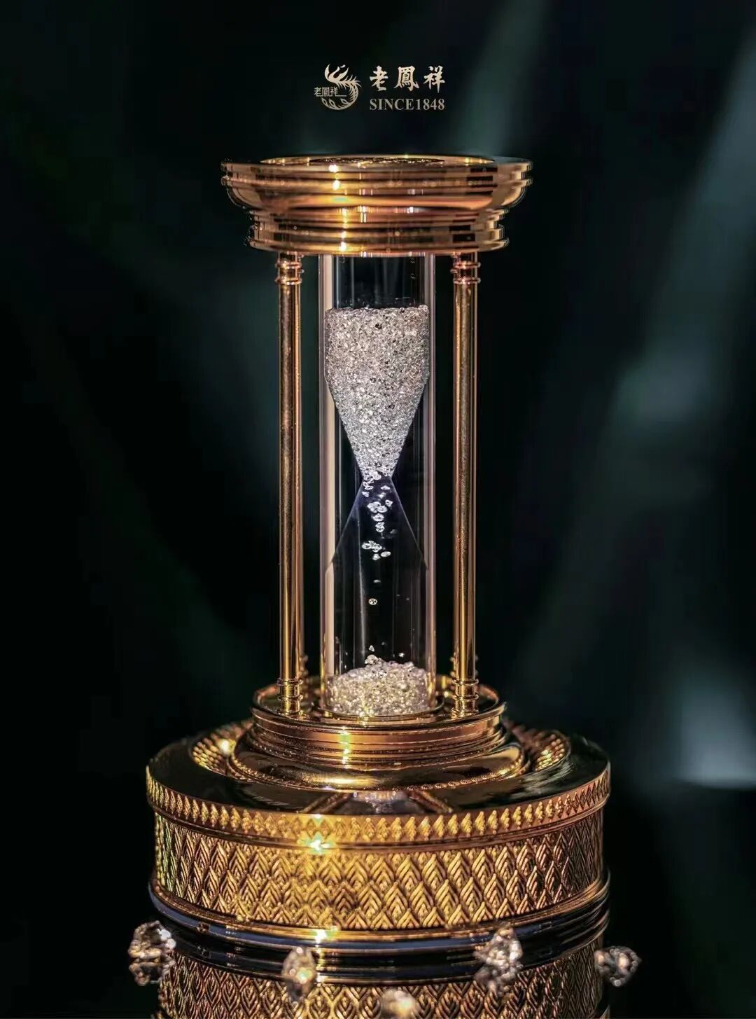 作为拥有百年荣耀的老凤祥品牌,拥有众多经典藏品,也是品牌的沉淀和积累:亿元级典藏粉钻璀璨耀世;中国第一枚钻石铂金戒指复刻版经典亮相;老凤祥175周年华诞纪念版天然钻石沙漏,以190克拉钻石将时光流逝生动展现。本次展览不仅突出钻石之美,老凤祥的名师匠人通过妙心巧思与慧眼巧手,精选优质钻石, 将其与翡翠、有色宝石和贵金属完美融合,打造出令人叹为观止的钻石珠宝艺术珍品。中国工艺美术大师张心一近年力作《星辰之舞》演绎星空的璀璨震撼。中国工艺美术大师张京羊采用七颗色泽浓艳的帝王种翡翠蛋面作为主体,配以各种琢型、色调一致的高品质钻石,打造出传世之作《岁岁平安》。