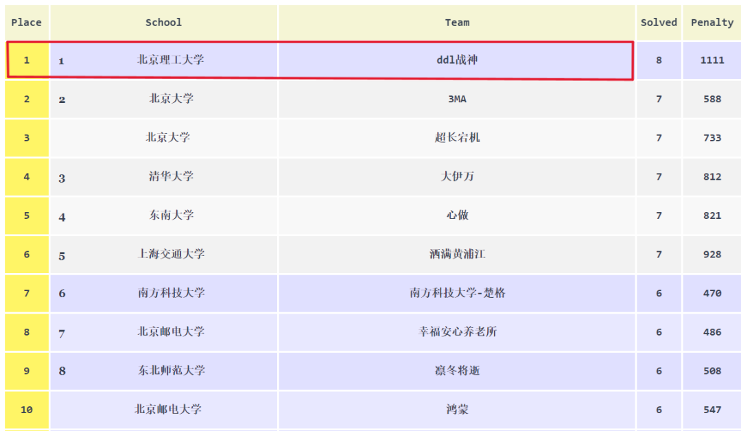 在同赛季的银川区域赛中,他们以解出8题的成绩,在解题数量上力压一众强校,夺得冠军。