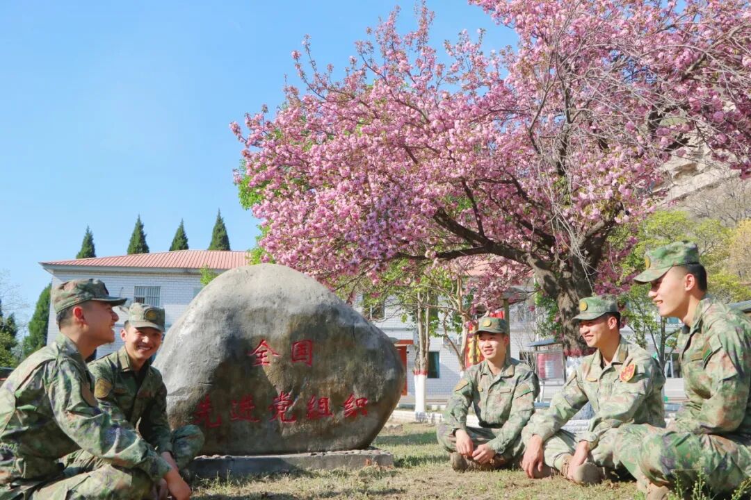 营区春的景色无声地沁润着官兵内心