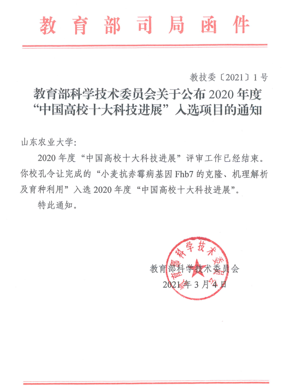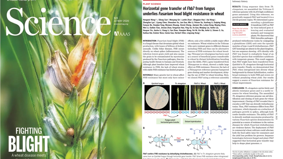 着力深化党建与业务深度融合,建好两大阵地,带领党员投身乡村振兴主战场。建好破解农业发展“卡脖子”难题的“科研攻关阵地”。多名博士生党员作为团队骨干,在全球首次找到并克隆抗小麦赤霉病关键基因 Fhb7,为攻克世界性难题找到了“金钥匙”,入选由两院院士评选的“2020年中国十大科技进展新闻”。多名研究生党员参与小麦条锈病等研究,取得重大突破,成果发表在Nature Communications、Molecular Plant等国际顶尖期刊。建好服务乡村振兴国家战略的“社会服务阵地”。与禾丰种业等知名农企共建协同育人联合体,推动教育、科技、人才和产业全链融通发展。支部党员参与培育40个小麦新品种、创制11项绿色新技术,累计推广面积9000余万亩。其中,全球首个携带抗赤霉病基因的“山农48”在山东、河南、河北等地大面积推广;山农30、山农29和山农28三个小麦品种两年三破全国冬小麦单产最高纪录,为实现种业科技自立自强、种源自主可控贡献青年力量。