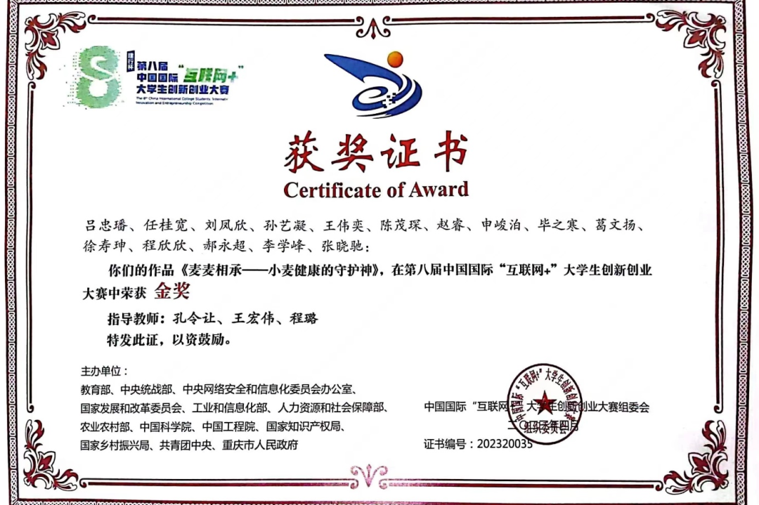 第八届中国国际“互联网+”大学生创新创业大赛金奖