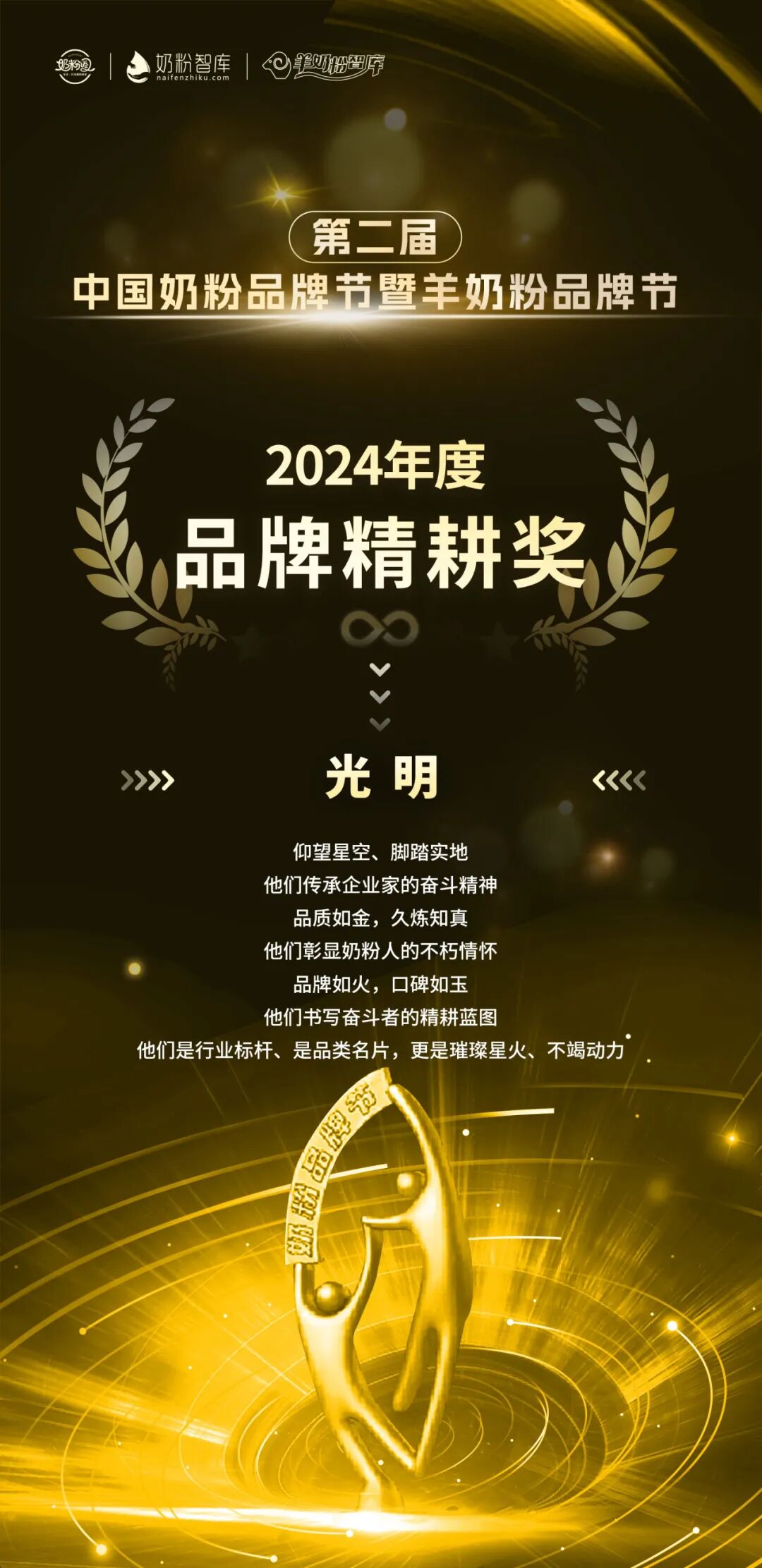 近日,由奶粉智库&奶粉圈举办的第二届中国奶粉品牌节在成都举行,光明乳业旗下三款婴配粉一举斩获2024年度品牌精耕奖。