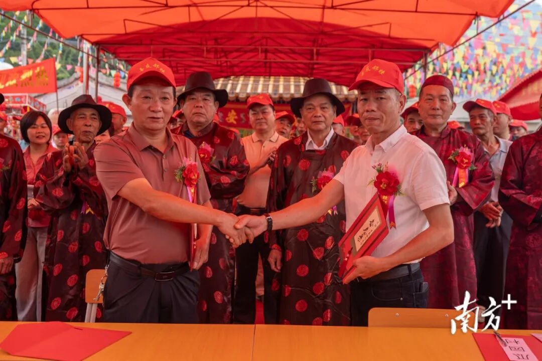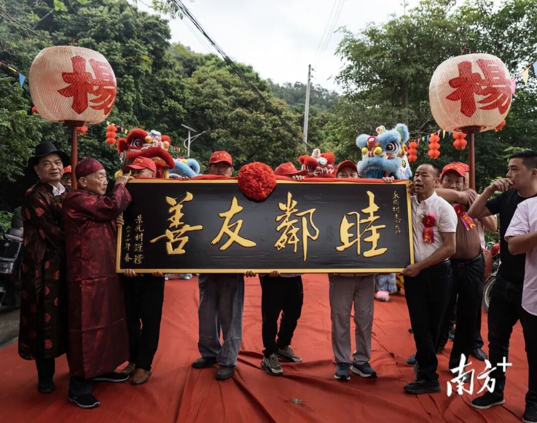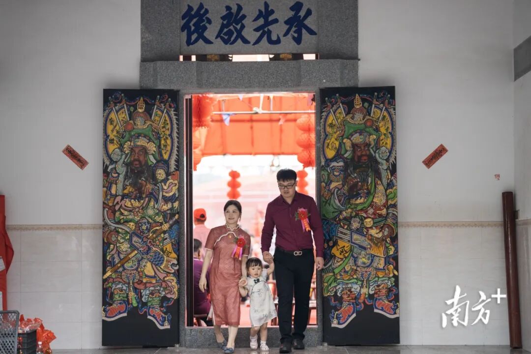 4月21日,来自揭阳普宁市梅塘镇的小夫妻杨妙青和邱晓宁又一次郑重地穿上婚服。在一场“世仇村”的和解仪式后,已“持证上岗”3年的他们,将如愿得到“族人祝福和祖宗认可”。用潮汕话说,就是“老爷保贺”!2024年4月21日,鞭炮声中,景光村和瓜园村互赠睦邻友善牌匾。至此,近300年的“枷锁”彻底解开。2024年4月21日,杨妙青和邱晓宁再次穿上了3年前结婚时穿的衣服,带上女儿走进景光村祠堂,参加景光村和瓜园村的和解仪式。好事为何多磨?这可以追溯到近300年前。1736年,梅塘镇景光村和毗邻的瓜园村结下了仇怨。杨妙青和邱晓宁便分别来自这两个村。“听说两村因为水利问题发生纠纷,可能是抢夺资源。”2024年4月19日,景光村流向瓜园村的河流长满了杂草。“上世纪60年代闹得最凶。两村斗殴时,领头的分别把杨姓的亲戚和邱姓的亲戚都叫来了。”一个个“听说”,微弱地延续着“仇恨之火”,魔幻地给村民交往上了“枷锁”,让男女恋爱犯了禁忌。然而,再大的仇恨也没挡住天定的缘分。2011年,杨妙青和邱晓宁相互看对了眼。“但当时太年轻,觉得很害怕,也不敢告诉父母,悄悄处了3个月就分手了。”杨妙青说。2024年4月21日,杨妙青和邱晓宁再次穿上了3年前结婚时穿的衣服,准备带上女儿参加景光村和瓜园村的和解仪式。本以为是“无言的结局”,没想到8年后,两人再度“来电”,又一次“我选择了你,你选择了我”。经历了兜兜转转、寻寻觅觅,他们这次无比坚定。可2021年,他俩提出要结婚,家里还是炸开了锅,亲友们齐刷刷投了反对票。但,“反对无效”。只是,这一“离经叛道”之举成了村里的大新闻。婚后,夫妻俩小日子过得美满幸福,心里却总有一个疙瘩。不久前,听说两村要和解,两人当即决定前往见证,希望在“百年和好”的热烈与喜悦中,他们的“百年好合”能光明正大地得到认可和祝福。2024年4月21日,杨妙青再次穿上了3年前结婚时穿的衣服,戴上了结婚时戴的耳饰,准备参加景光村和瓜园村的和解仪式。其实,村里“掌事人”对和解一事早有谋划。“地球都是一个村了,两村还结什么仇呢?”景光村党总支部书记、村委会主任杨锡明感到此事迫切。瓜园村党总支部书记、村委会主任邱乐广也有积极意愿:“这些年村民呼声很大,就是之前没人能真正组织起来。”随着乡风文明建设深入推进,大家眼看着附近的“世仇村”陆续和解,也渐渐觉得“是时候了”!2024年初,在梅塘镇委、镇政府的推动下,镇村分别成立了睦邻友好领导小组,并接连召开座谈会、村民代表大会,最终形成共识。对此,杨锡明的心得是锁定关键人物:“得做通‘老人头’的工作,他们同意,其他人就好办了!”随后,双方又迅速开了和解仪式对接会,确定了最重要的原则——两村参加仪式的人数、祭拜流程、服饰等必须保持一致。2024年3月28日,景光村和瓜园村召开和解仪式对接会,梅塘镇委、镇政府,两村村委相关工作人员对和解仪式流程进行初步讨论。但就一个环节,他们产生了分歧。商量好的“睦邻友好林”种在哪里?思前想后,双方决定选址在两村交界的小山坡。这块地的归属存在争议。村民都说是自家的,“睦邻友好林”一种就是大家的了,既为子孙后代立下了见证,又为绿美广东生态建设增添了新绿,一举两得。2024年4月19日,景光村村民正在为和解仪式做准备。2024年4月19日,景光村村民正在为和解仪式做准备。景光村和瓜园村和解仪式的经费主要来自于两村乡贤与村民的捐款。2024年4月20日,景光村祠堂外张贴的“睦邻捐款”公告。农历三月十三日(4月21日)是大家敲定的吉日。鞭炮声中,双方代表互赠睦邻友善牌匾。至此,近300年的“枷锁”彻底解开。为了“永世友好”,两村还签了《睦邻友好备忘录》,约定在遵守原则的前提下,景光村支持瓜园村引水渠。梅塘镇党委书记陈中晔还透露,接下来会将景光村、瓜园村一起纳入石空山生态园建设规划中,两村携手发展农旅经济。2024年4月21日,景光村和瓜园村举行了隆重的和解仪式,两村进行了互访,并互赠睦邻友善牌匾。2024年4月21日,景光村和瓜园村举行了隆重的和解仪式,还分别在两村上演了英歌舞、醒狮等表演。2024年4月21日,景光村和瓜园村签了《睦邻友好备忘录》,约定在遵守原则的前提下,景光村支持瓜园村引水渠。2024年4月21日,和解仪式后,梅塘镇镇委、镇政府,景光村和瓜园村村委相关工作人员与村民一起在两村交界的小山坡种下了“睦邻友好林”。此时,幸福洋溢的杨妙青和邱晓宁在人群中格外耀眼。他们终于可以不惧旁人眼光,将祝福照单全收了。2018年至今,普宁已有29对“世仇村”和解。未来,更多“百年和好”的故事将上演,也许还能“助攻”不少“百年好合”呢!2024年4月21日,杨妙青和邱晓宁带着女儿,与参加和解仪式的两村代表共进午餐。点击下方标签,关注南方日报,在对话框内回复关键词,即可解锁更多技能。