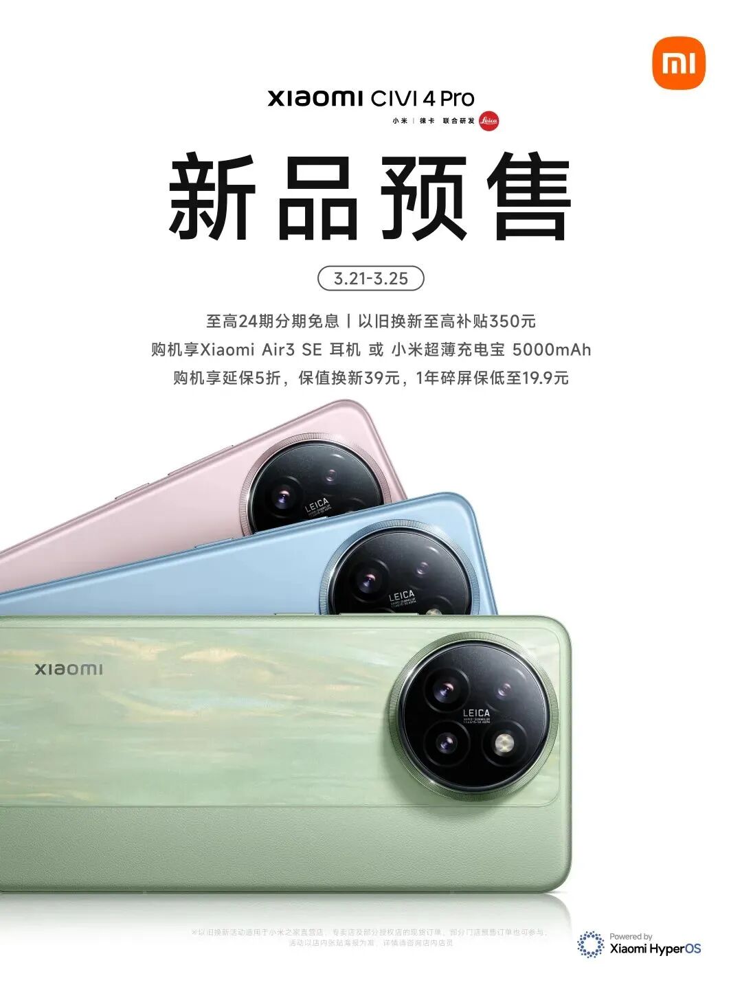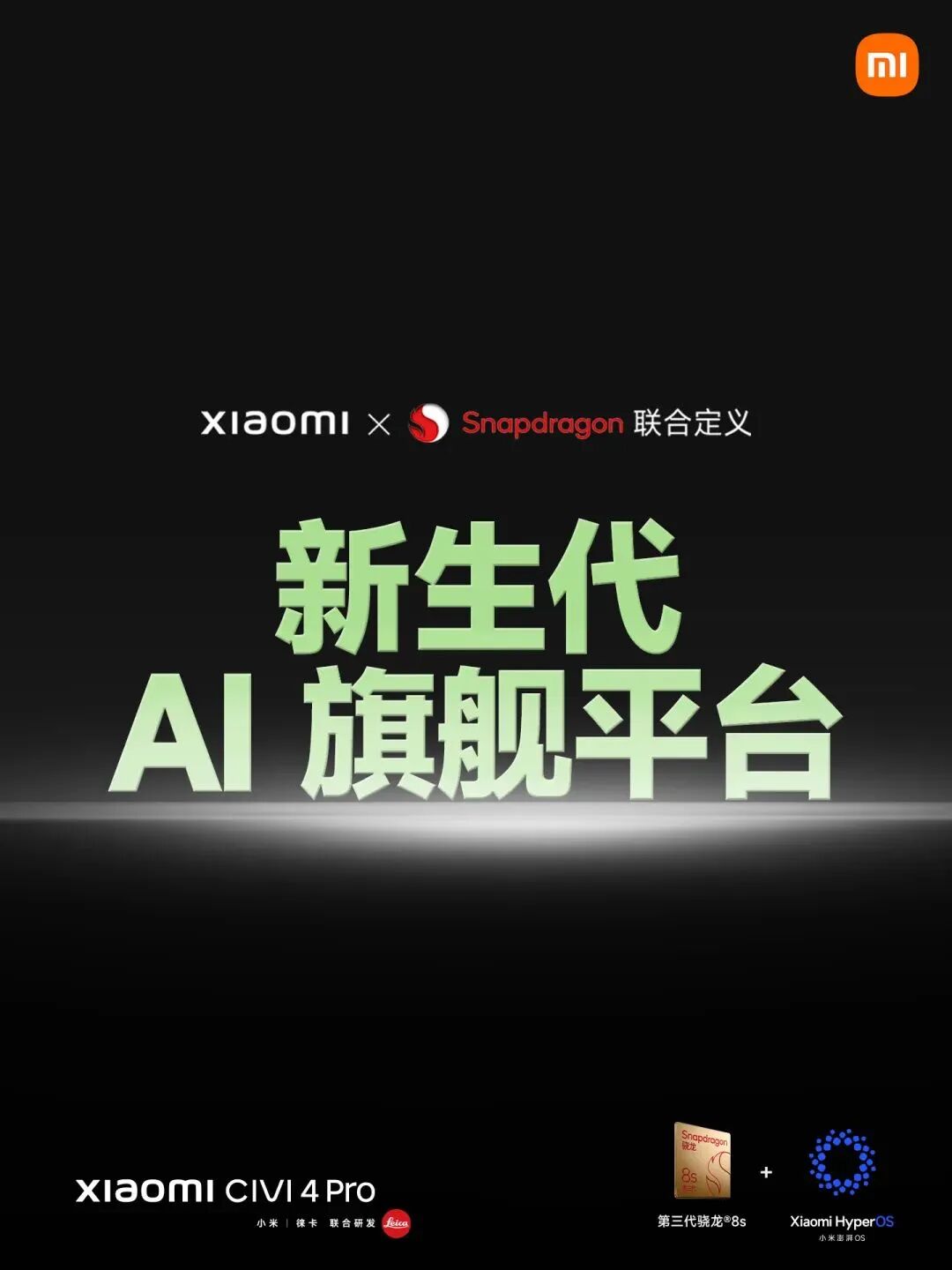 小米Civi 4 Pro继承Ultra实力,搭载「Xiaomi AISP」,