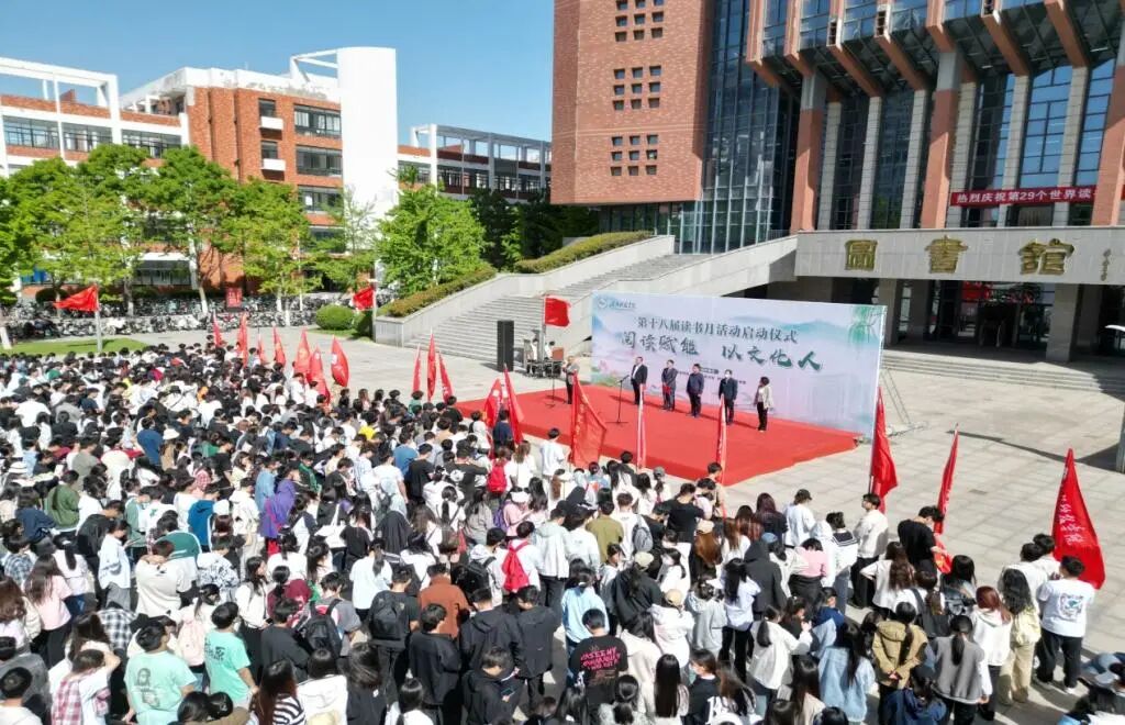 4月23日上午,读书月活动启动仪式在启智广场举行。副校长王洪亮出席启动仪式并发表讲话。