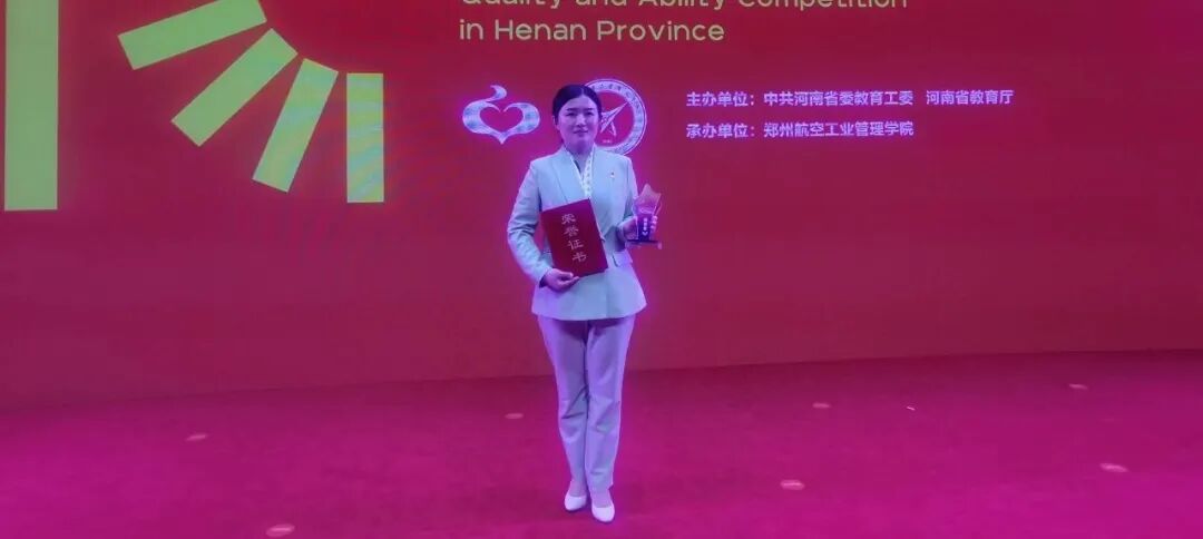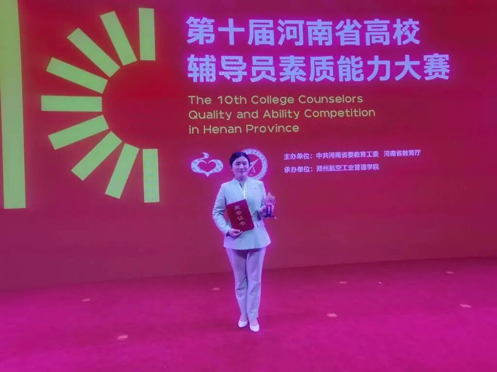4月23日至24日,由中共河南省委教育工委、河南省教育厅主办的第十届河南省高校辅导员素质能力大赛在郑州航空工业管理学院隆重举行。我校美术与设计学院辅导员苏梦瑶荣获大赛特等奖。