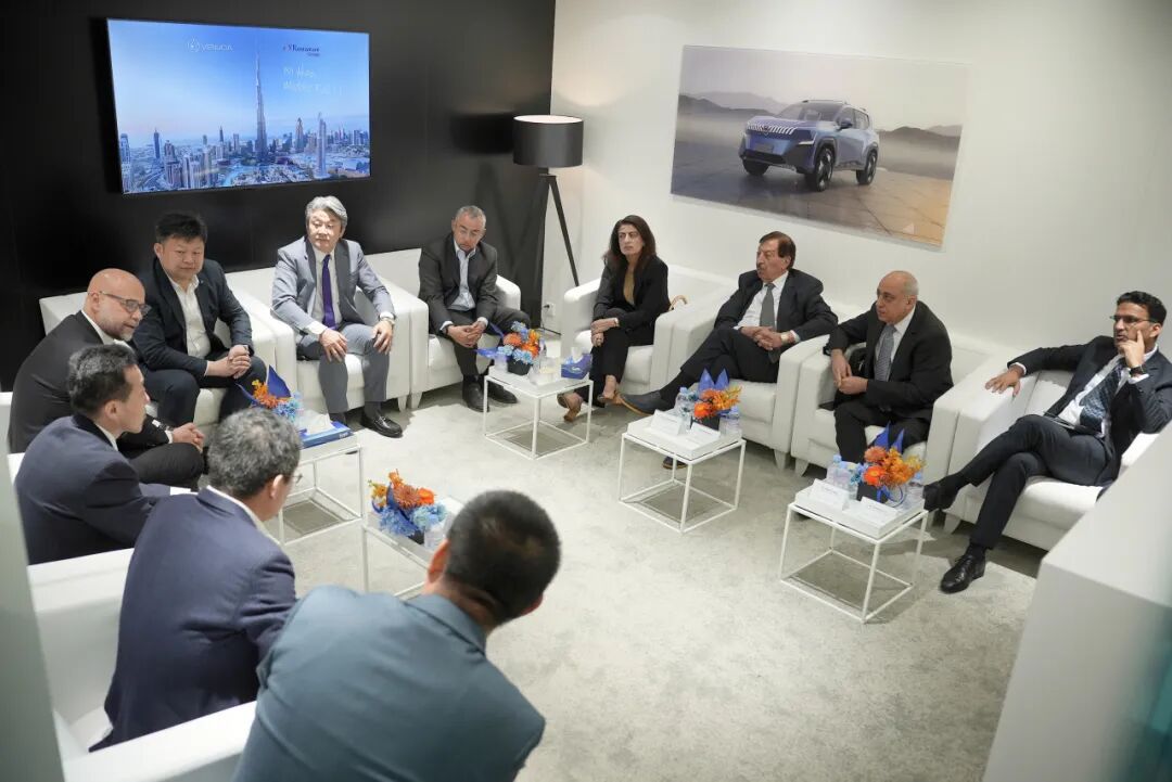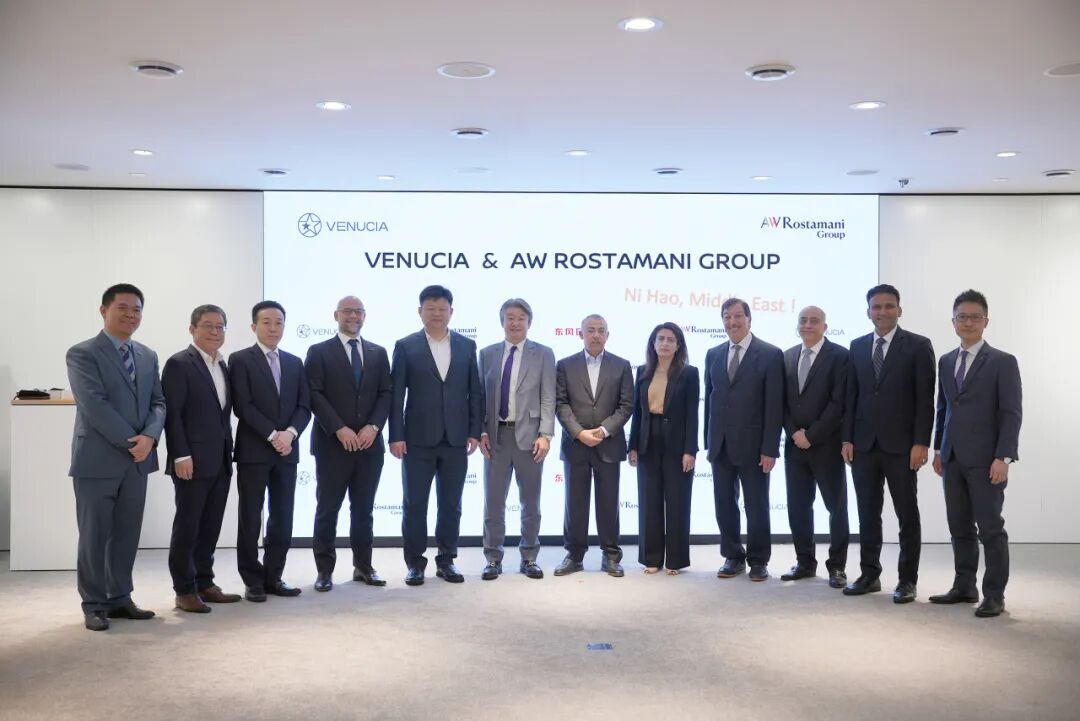 东风日产总经理关口勋,副总经理周锋,经营管理总部总部长田中岳志,启辰事业总部总部长、英菲尼迪事业总部副总部长王保军,出口事业部副部长喻涛,启辰事业总部商品规划部高级顾问李欣霖;AW-R集团董事长兼首席执行官KHALID AL ROSTAMANI,首席运营官、董事兼董事会成员DR AMINA AL ROSTAMANI博士,汽车板块首席执行官MICHEL AYAT,汽车板块首席战略与规划官Mahesh Rohra等出席见面会。日产汽车高级副总裁、AMIEO(非洲、中东、印度、欧洲和大洋洲)管理委员会主席Guillaume Cartier作为特邀嘉宾,共同见证这一重要时刻。