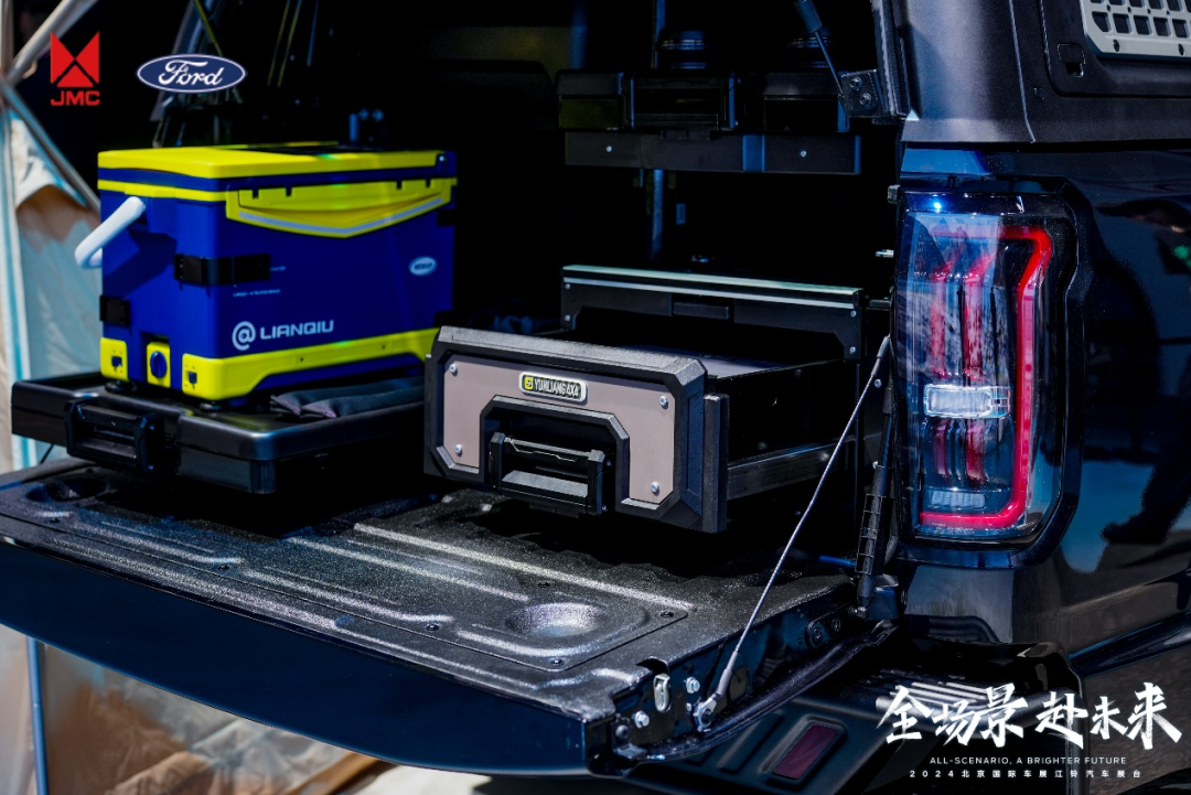 车展现场,江铃大道针对用户特定需求将大道魔盒DIY成了更适合钓鱼的版本,赋予了车辆更强场景实用性和可玩性,用户也可以根据穿越、露营等不同需求自由组合搭配,真正完成了从“一斗专用”到“一斗多用”的进阶。