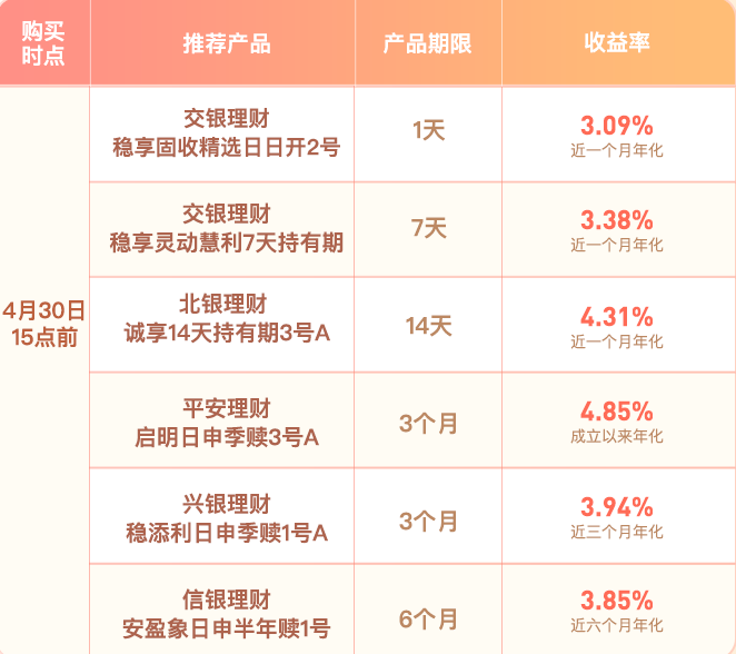 4月29日15点前购买,4月30日以4月29日的产品净值确认份额;