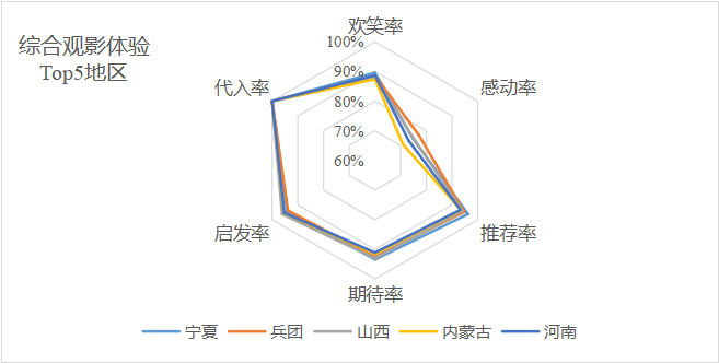 感动率TOP5分别是兵团、青海、山西、宁夏和海南,前三名感动率均在75%以上。千里黄云路,儿女泪沾巾,看来在长风山海之间,更能放大这部电影的思政柔情。